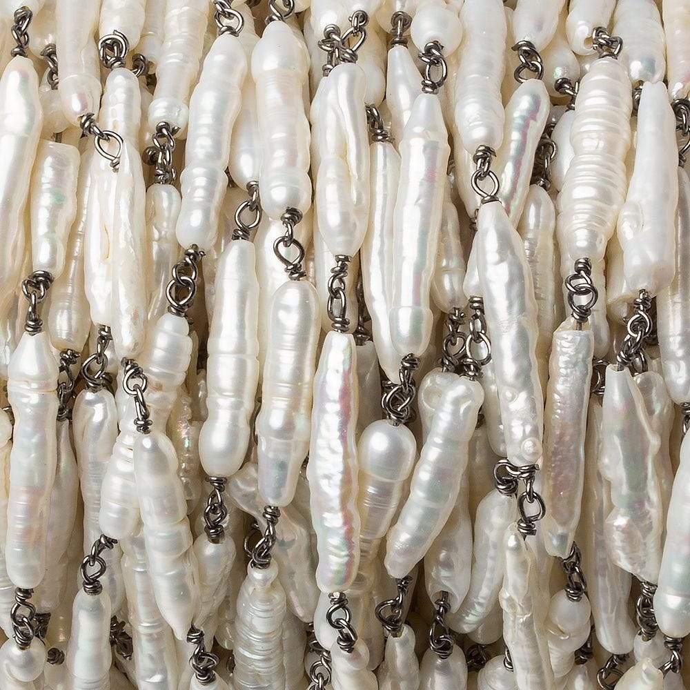 19x4mm White Biwa Pearl Black Gold .925 Silver Chain by the foot 11 pcs