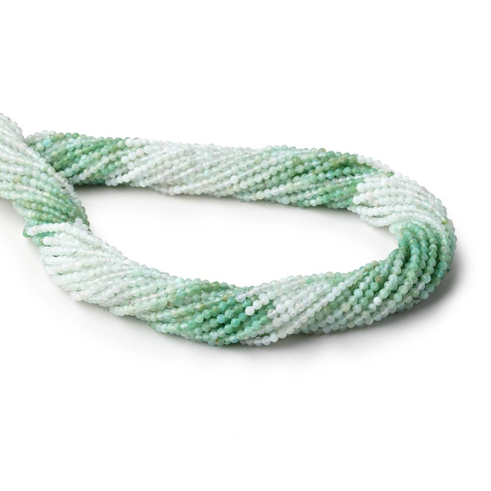 2.5mm diameter Blue Peruvian Opal Micro faceted round beads on 16 inch length having 186 pieces per strand for these expertly crafted beads showing excellent symmetry and brilliance with a perfect micro fine facet.