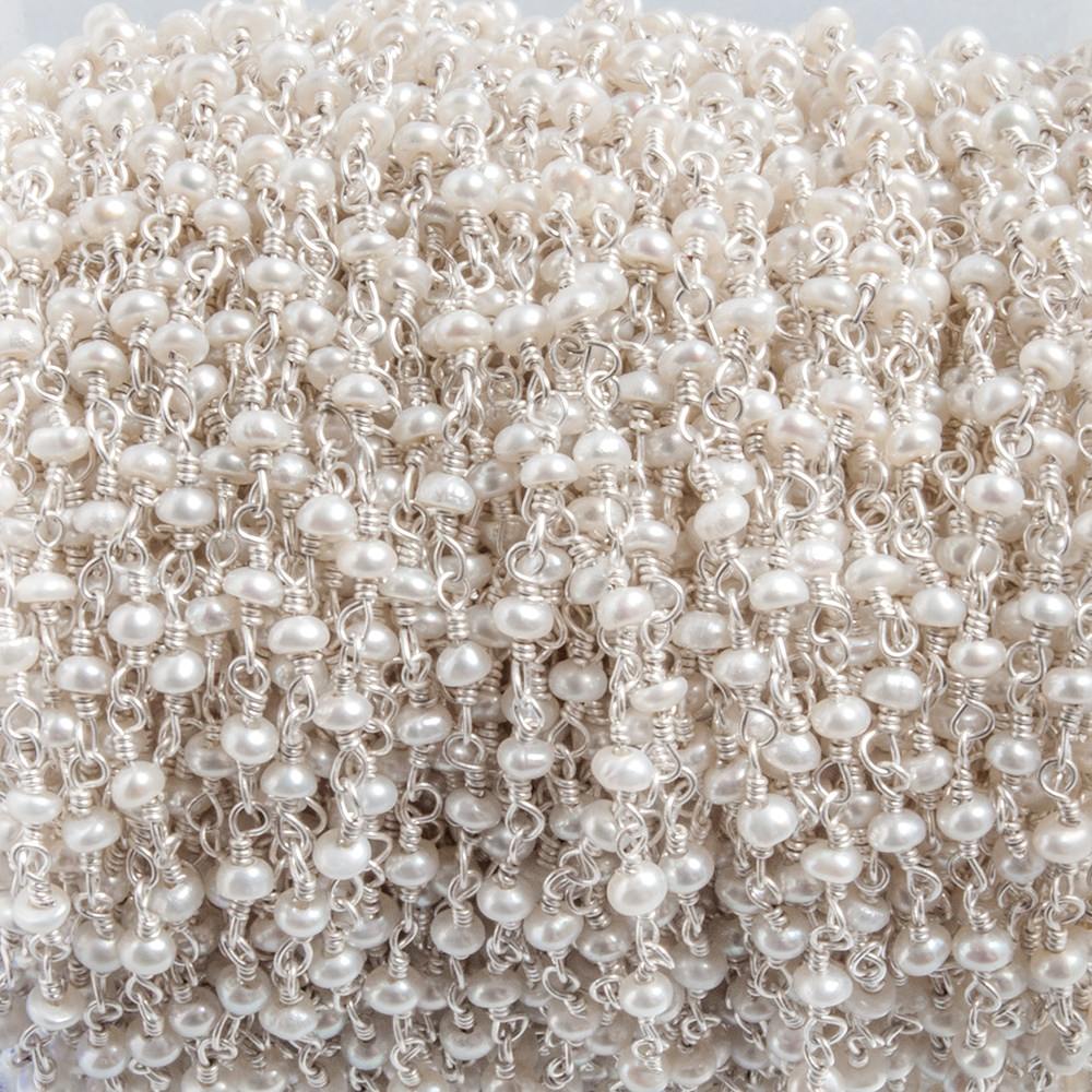 2.5x2 millimeter White Side Drilled Baroque Freshwater Pearl Sterling Sterling Silver Rosary Chain sold by 1 foot increments has approximately 40 beads. (3 quantity = 36 inches )