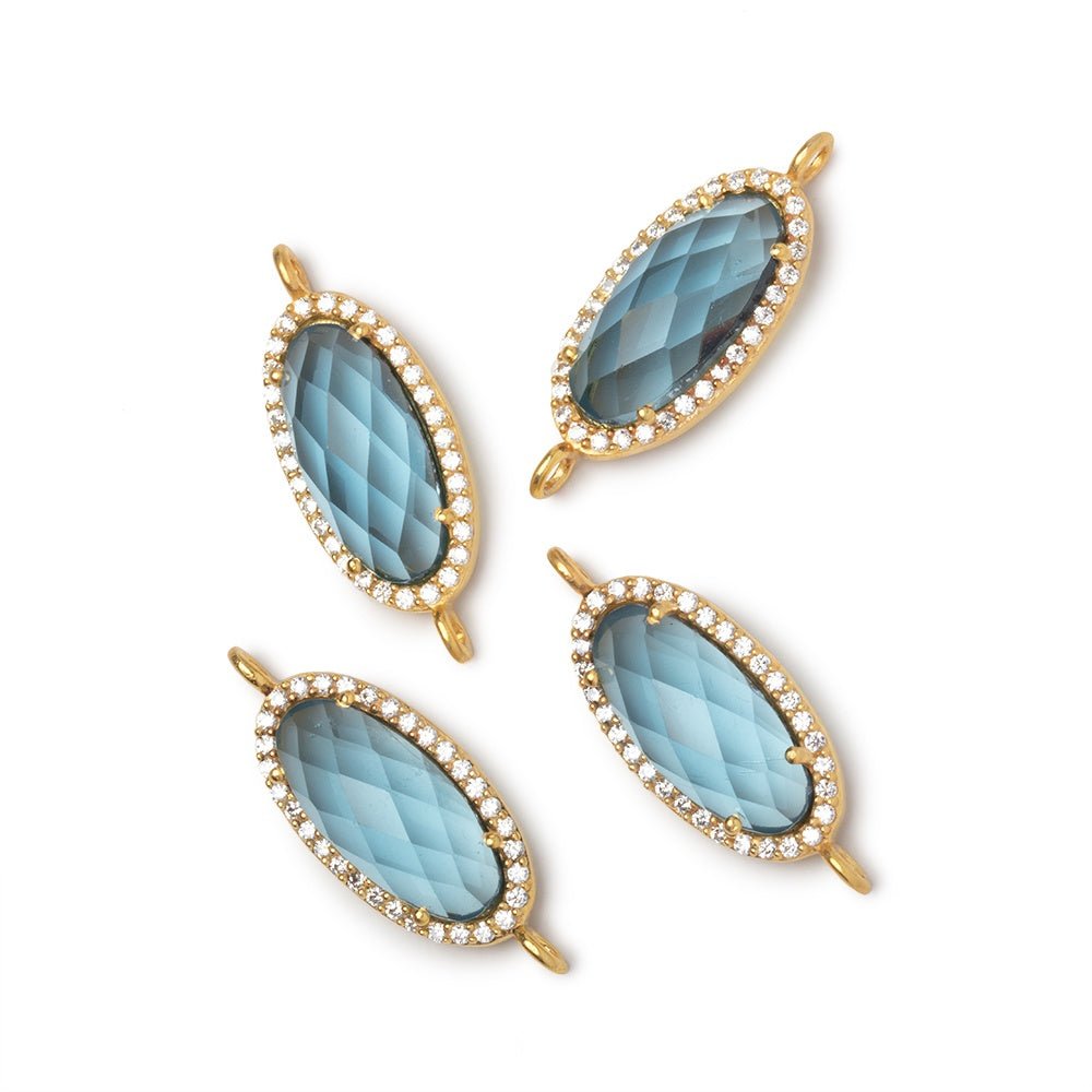 20x10mm Vermeil CZ Bezel London Blue Hydro Quartz Oval Connector 1 Focal