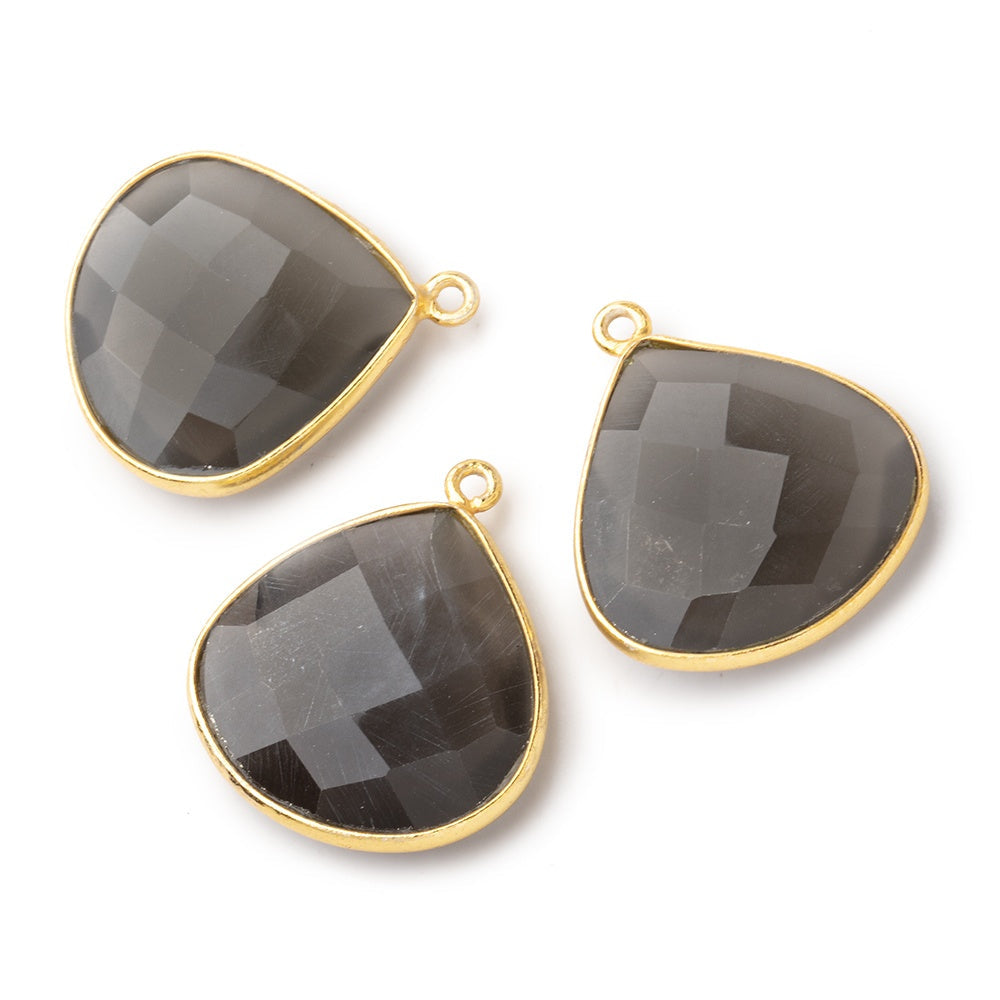 22x22mm Vermeil Bezeled Platinum Grey Moonstone Heart Pendant sold as one focal piece.