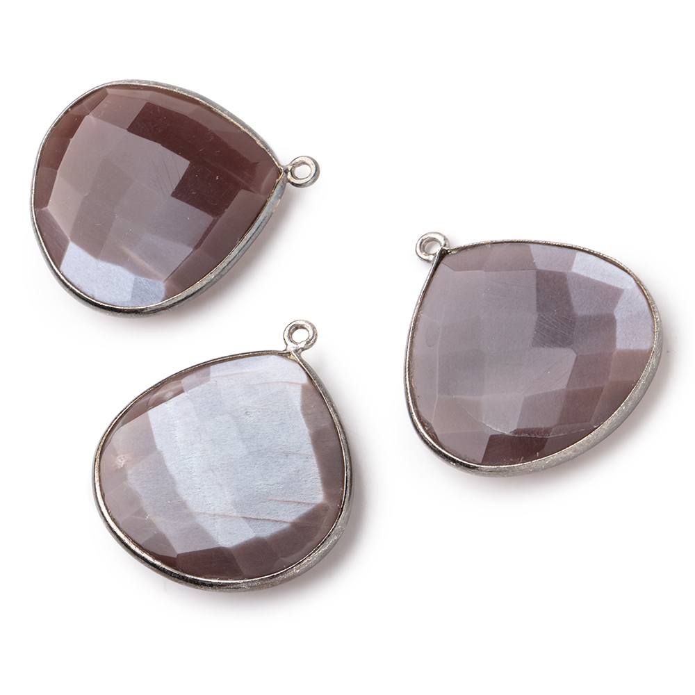 26mm x 26mm Black Gold Bezeled Chocolate Moonstone Heart Focal Pendant sold by the piece. These one of a kind Chocolate brown Moonstone translucent item is unique in character with a consistent excellent faceting style creating a symmetrical shape.