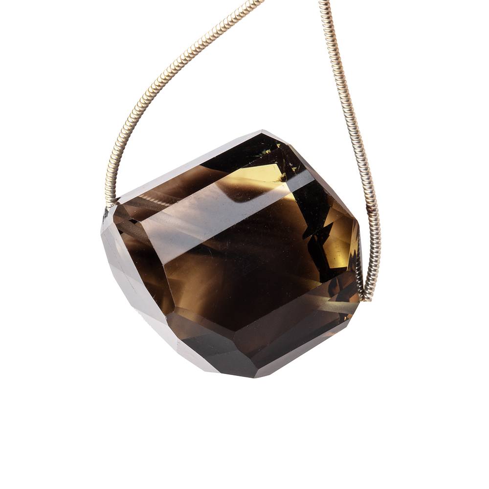 This Bi-Color Quartz faceted nugget focal bead exhibits a vitreous luster, has an excellent asymmetrical shape, wonderful crisp tonal quality with a transparent body, and measures approximately 27x21x18mm in size. This one of a kind focal has lovely rich lemon Quartz and Smoky Quartz hues.