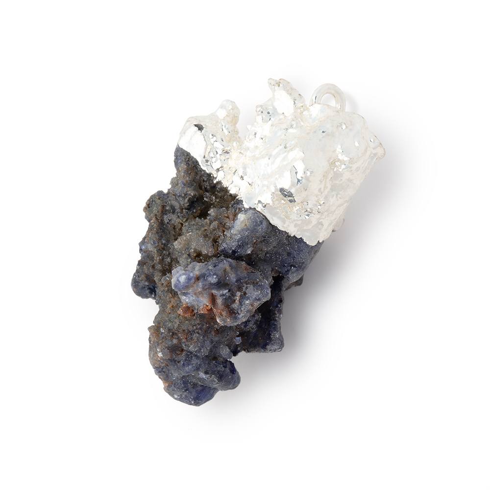 29x19mm Silver Leafed Blue Jammu Sapphire Natural Crystal 1 Pendant