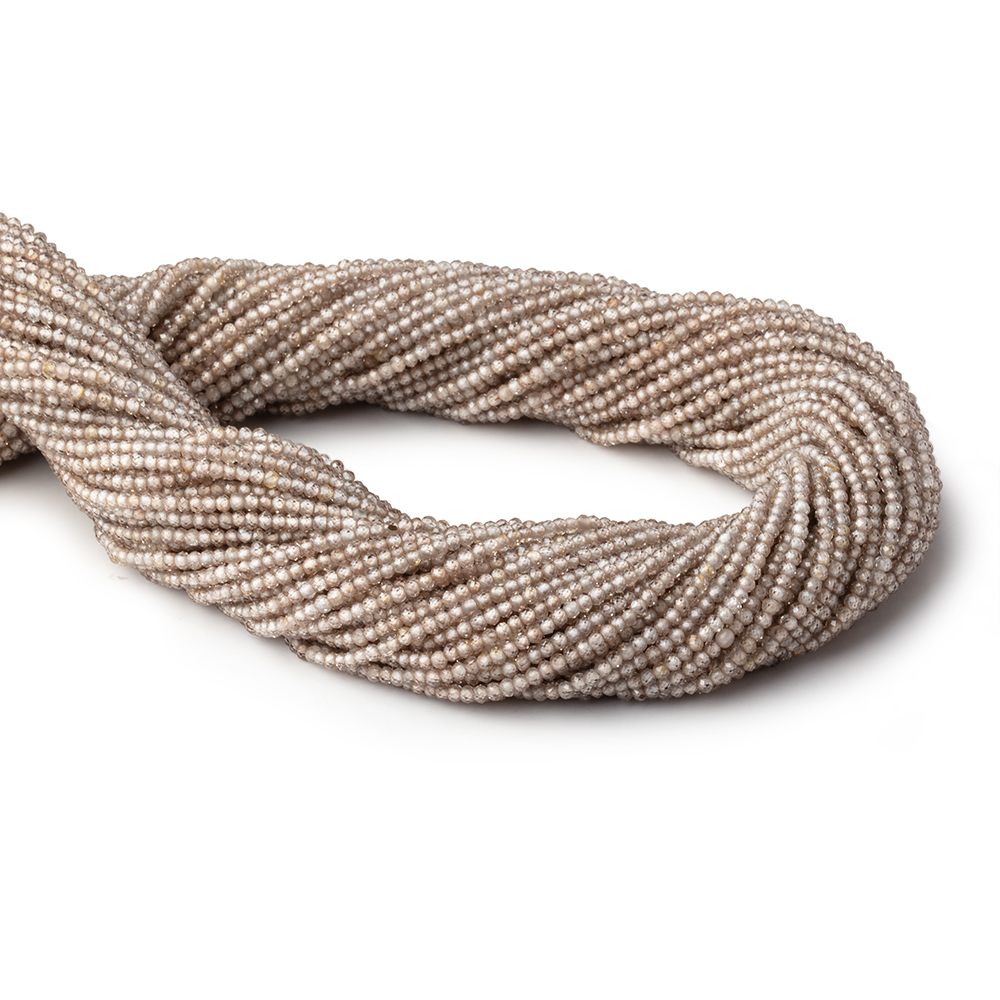 2mm diameter Champagne Zircon Micro Faceted rondelle beads on 13 inch length having 165 pieces per strand for these expertly crafted beads showing excellent symmetry and brilliance with a perfect micro fine facet. AA Grade