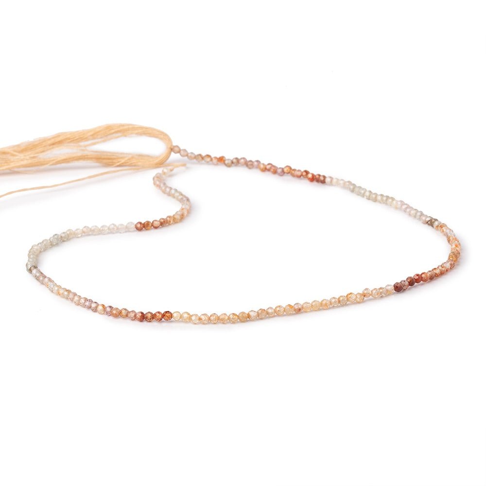 2mm Shaded Multi Color Zircon micro faceted Round beads showing superior brilliance, a symmetrical round shape, a well matched transparent quality, and a well crafted group of micro-fine faceted beads. AA Quality