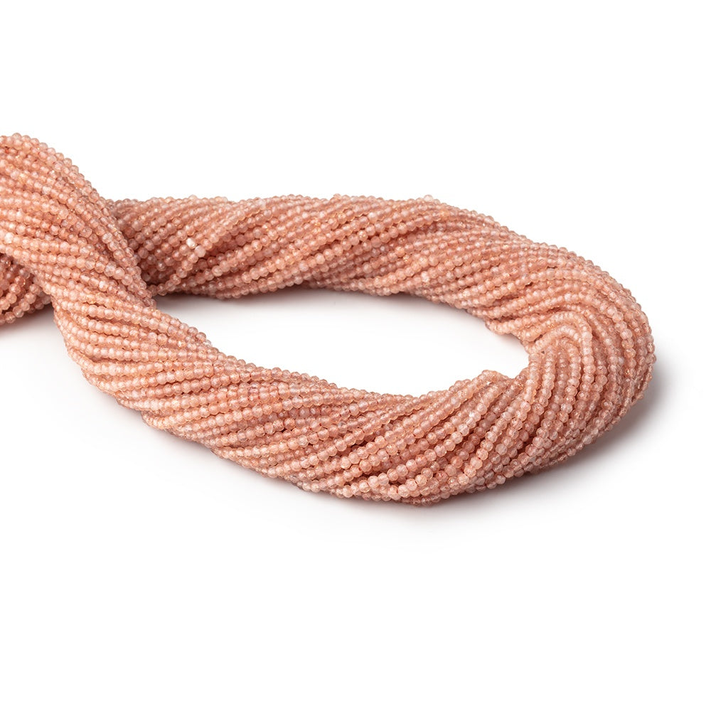 2mm Sunstone micro faceted rondelles have a highly vitreous luster on these expertly crafted beads showing excellent symmetry and brilliance with a perfect micro fine facet. AAA