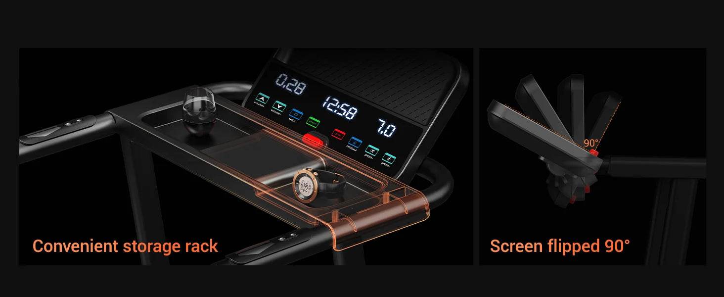 Smart Handrail: Monitor your heart rate in real-time and adjust speed easily with integrated controls for an efficient workout.