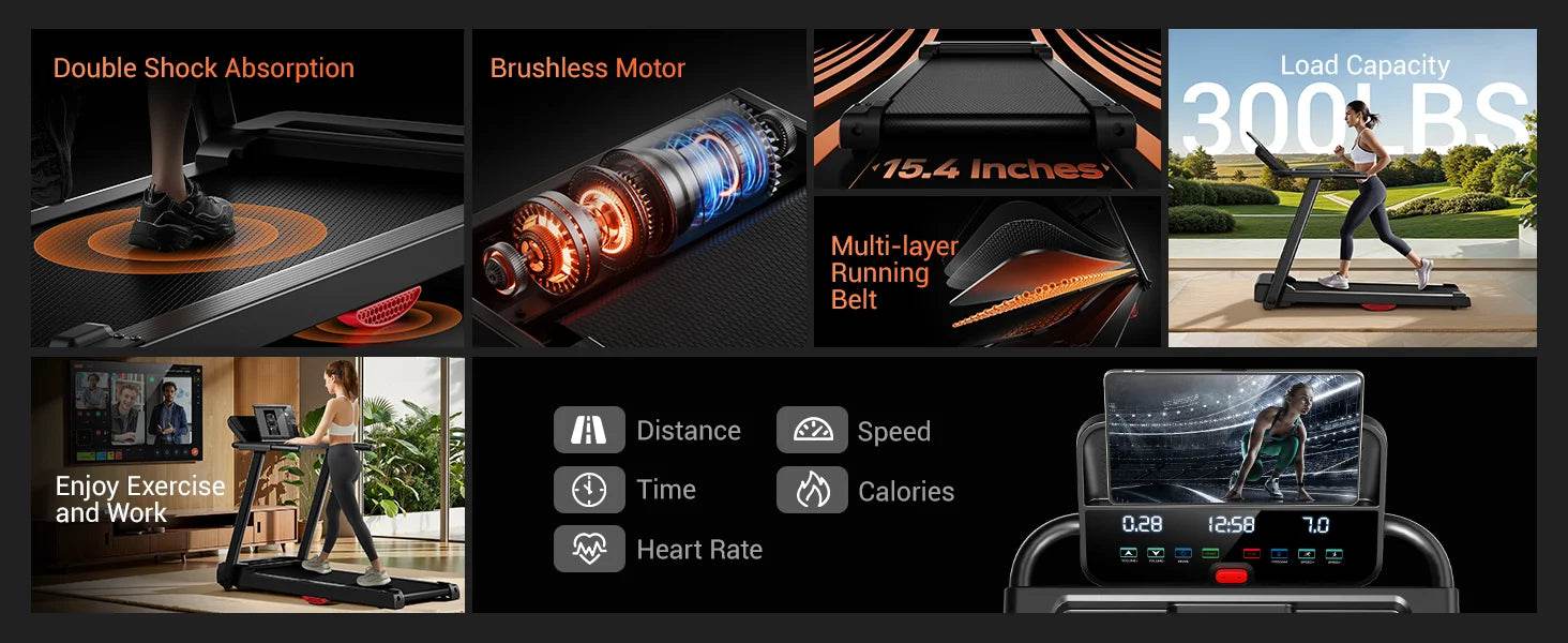 Powerful and Quiet Brushless Motor: Enjoy a maximum speed of 7.5 MPH while keeping noise levels below 45DB for a tranquil workout experience.