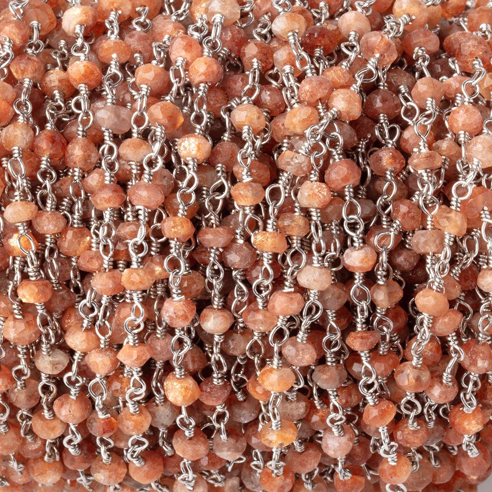 3-3.5mm Sunstone Faceted Rondelles on Silver Plated Chain