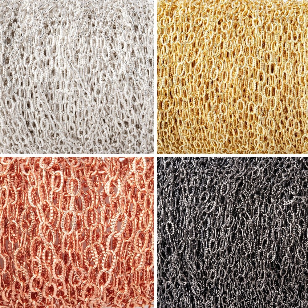 2mm width by 4mm length Ovals with a corrugated texture Plated Elongated Corrugated Oval Chain sold in 3 Foot increments. Available in Silver Plated, 22kt Gold Plated, Rose Gold Plated, and Black Gold Plated.