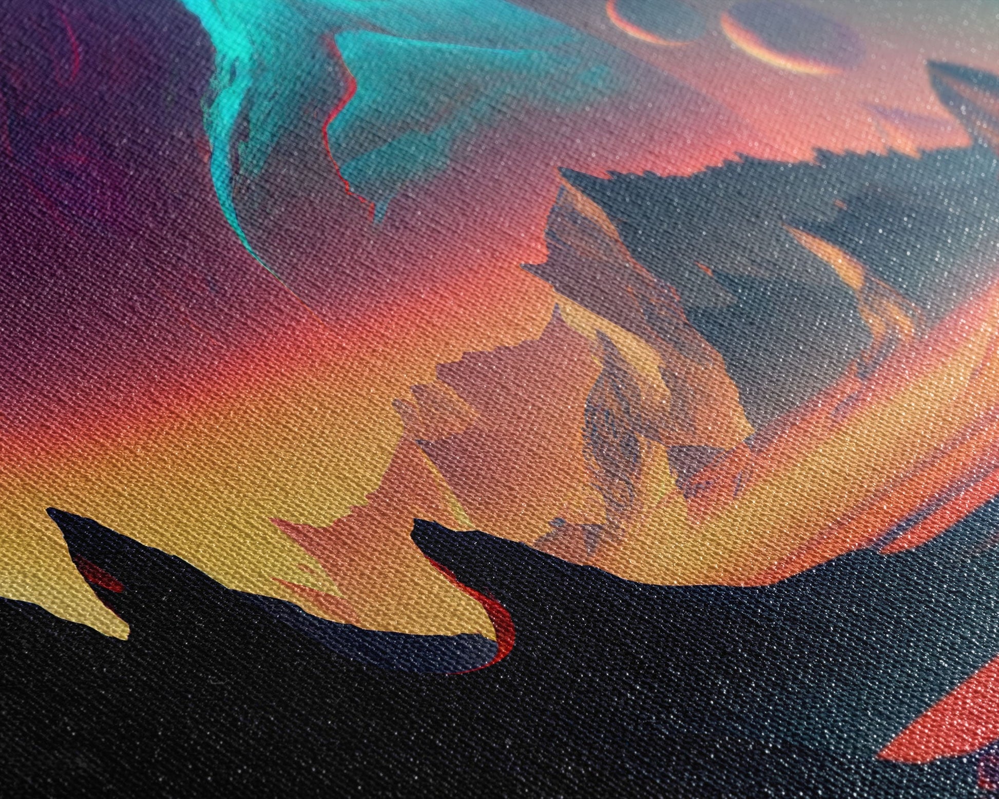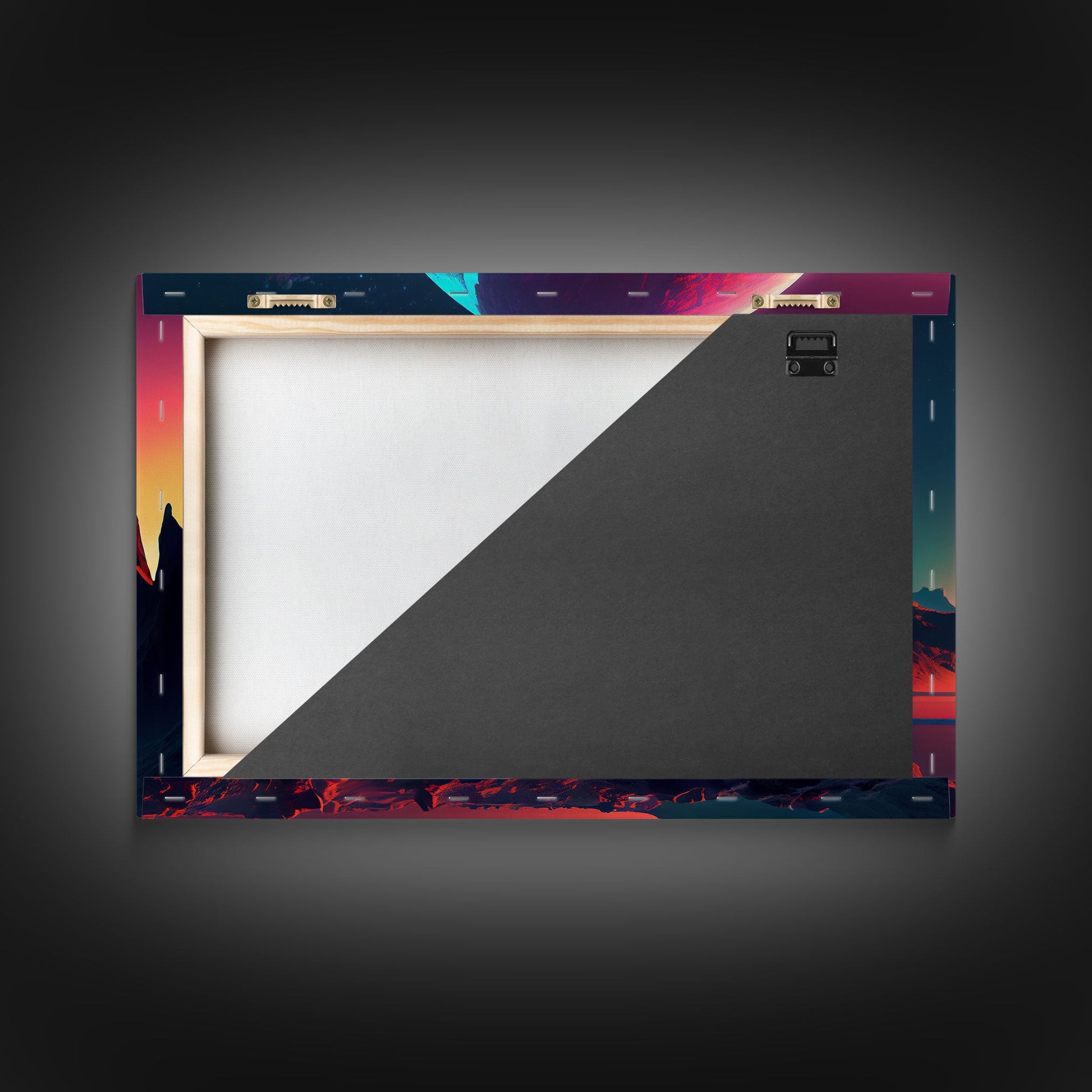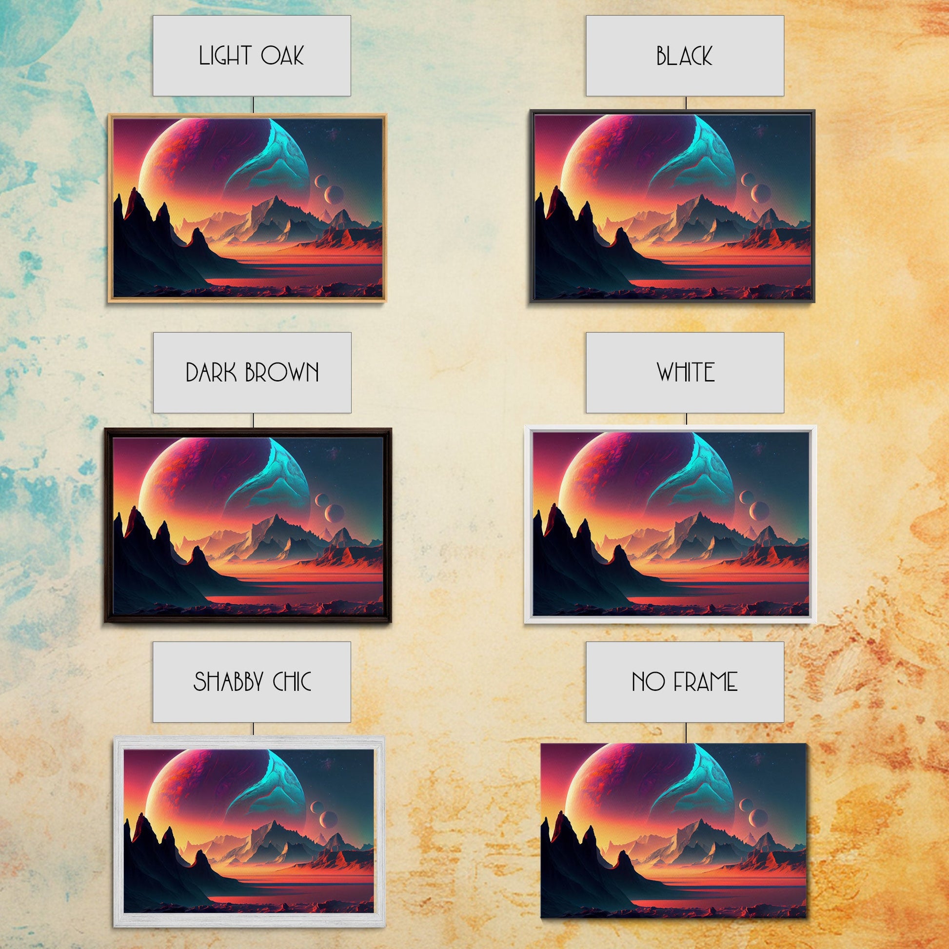 3 Moon Fantasy World, Retro Style Sci-Fi Art, Framed Canvas Print, Futuristic Art, Fantasy Decor