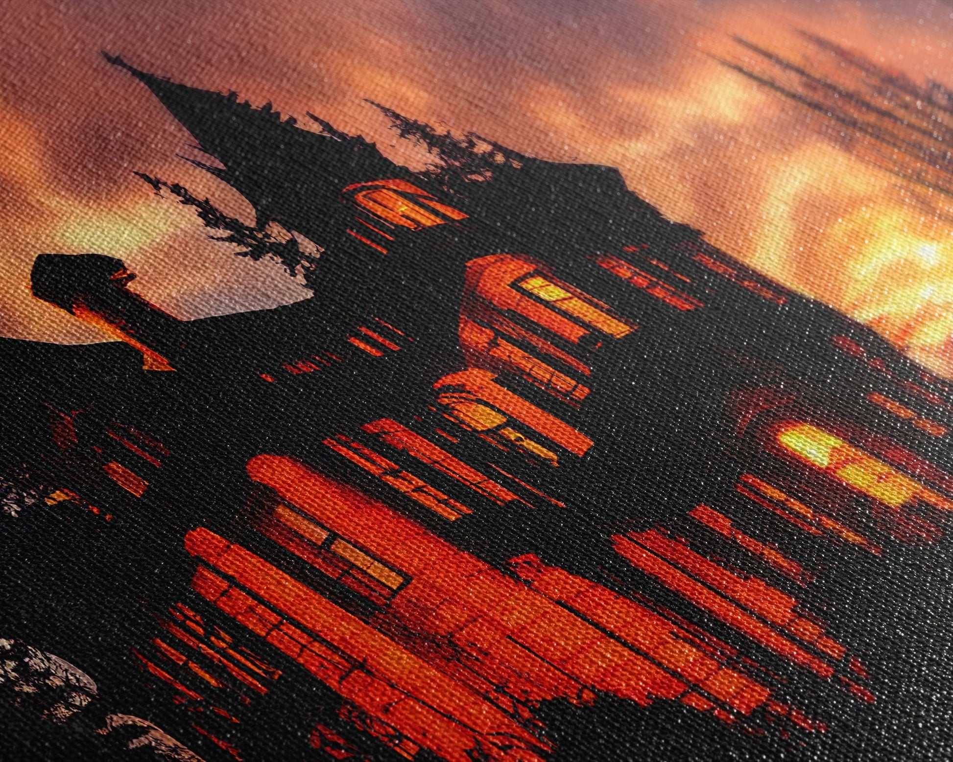 3 Piece Canvas Wall Decor, Ready To Hang Canvas Prints, Victorian Style Haunted House, Spooky Halloween Wall Art Decor