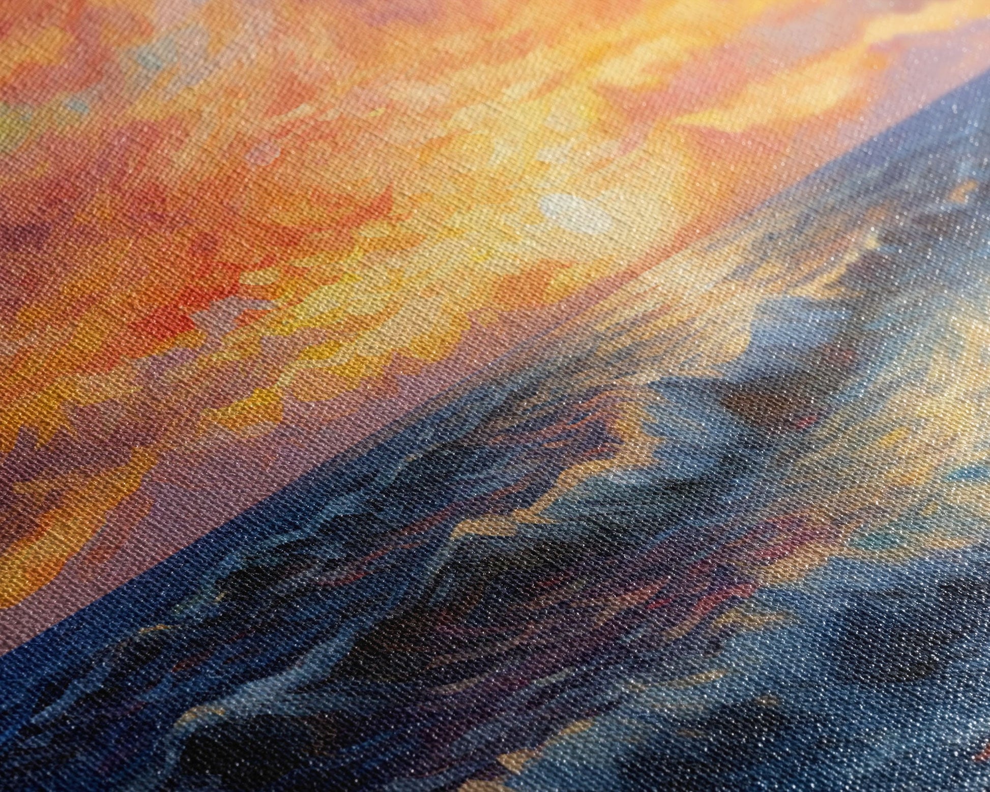 Most of our canvases are made in the USA, with the exception of canvases ordered with the light oak unstained frames, and any large canvases (24x48, 30x60, 16x48 and 20x60) ordered WITH a frame. These are temporarily made in and shipped from Europe, while we try to find a more consistent supplier in the USA.