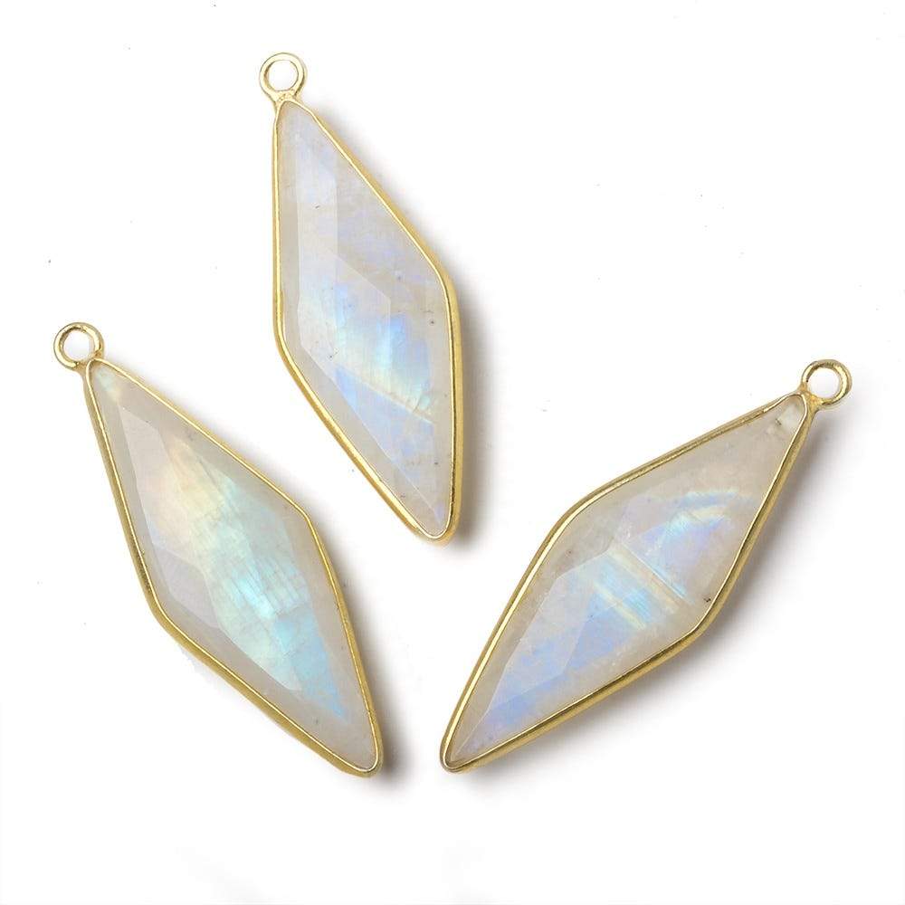 37x13mm Vermeil Bezel Rainbow Moonstone faceted kite pendant 1 piece