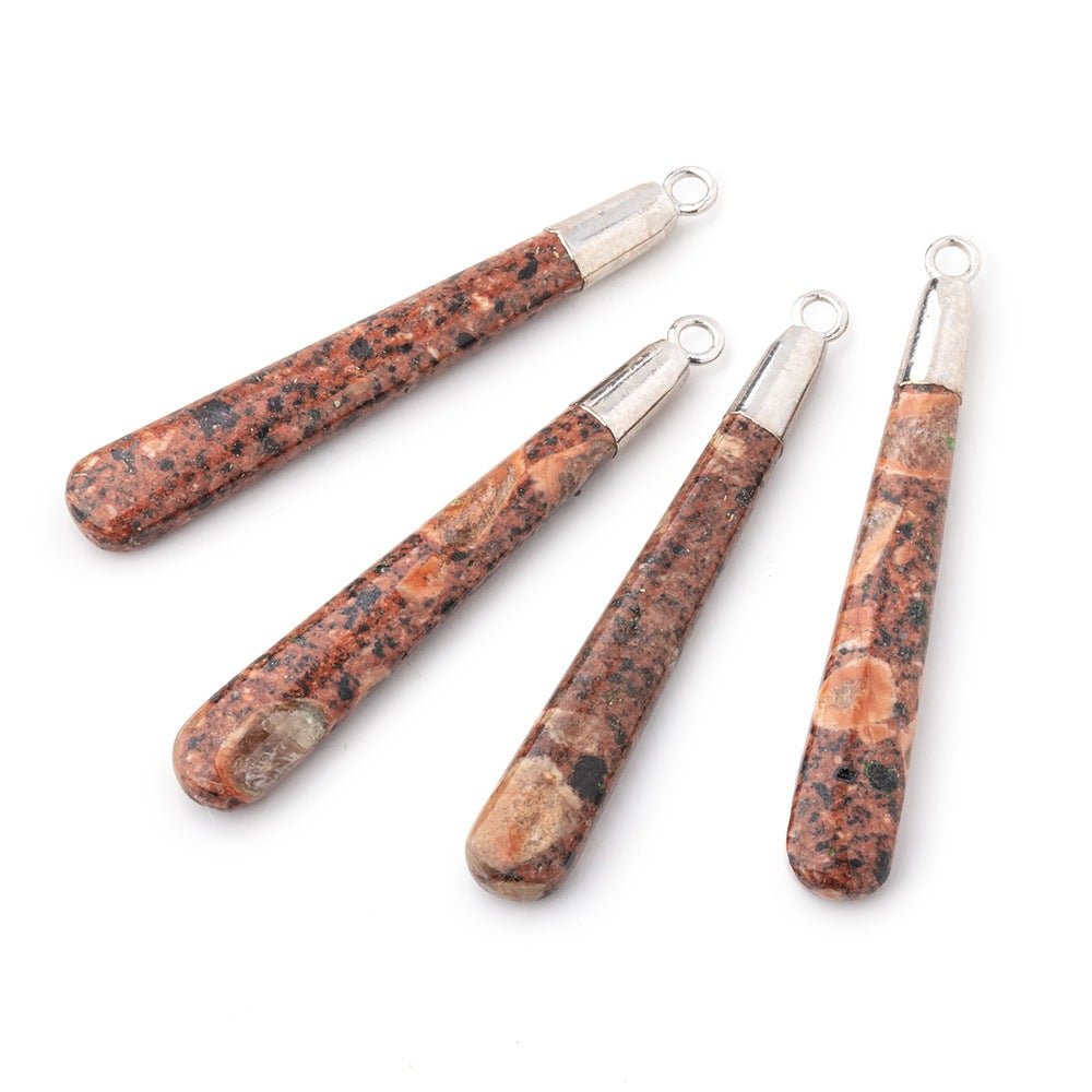 Silver Leafed Jasper plain elongated pear pendants are sold as 1 focal bead measuring approximately 39x6mm average size with a 3.5mm ring. Symmetrical, opaque beads with glass like luster and great make.