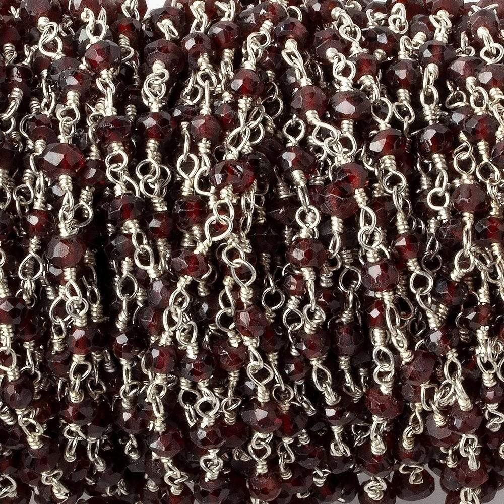 3mm Garnet faceted rondelle Silver plated Wire Wrapped Chain