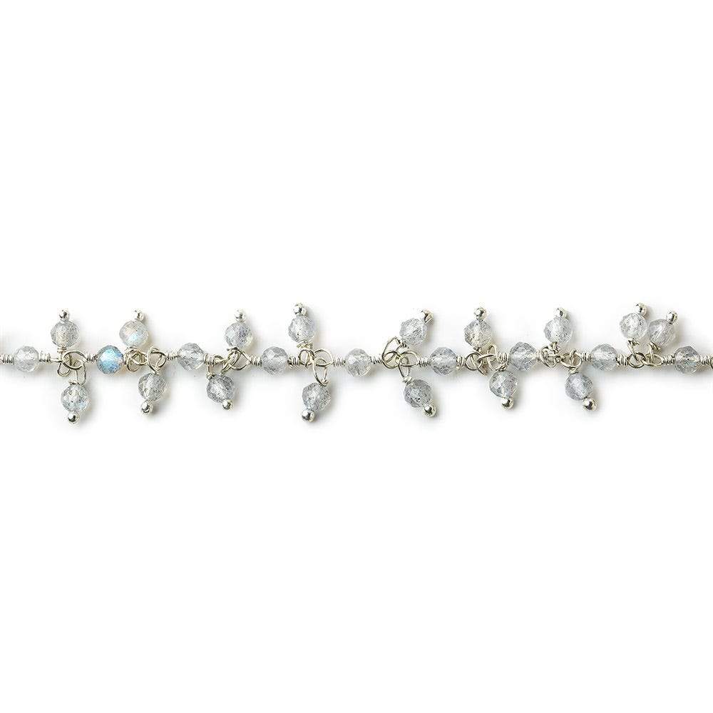 3mm Labradorite micro-faceted round Silver Dangling Chain by the foot