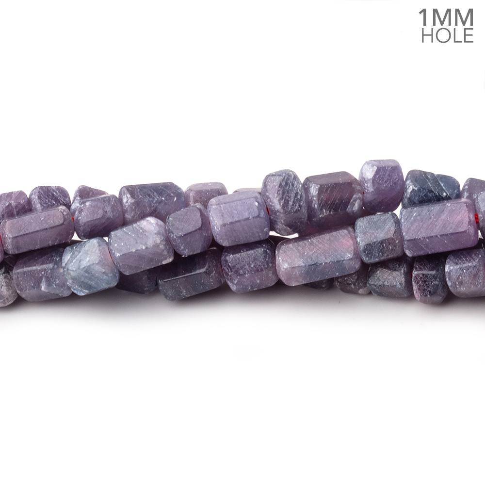 Ruby natural crystal tube beads measure approximately 3x6mm to 7x5mm in size, beads have a dull to vitreous luster, are a barrel tube shape of the natural alluvial corundum crystal, these Rubies are opaque in quality with no matrix inclusions, and these Rubies are a slightly bluish Red hue of strong saturation. 1mm inside diameter drill holes.