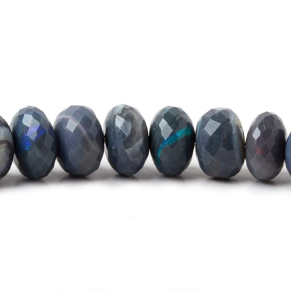 Australian Opal Faceted Rondelles have a waxy luster with excellent faceting creating a symmetrical rondelle shape, the Opal beads have scattered play of color in green-blue-orange-violet-yellow-periwinkle hues, their body is of an opaque quality with translucent areas of color flash, and these average sized rondelles in Opal are mined in Australia. AA grade