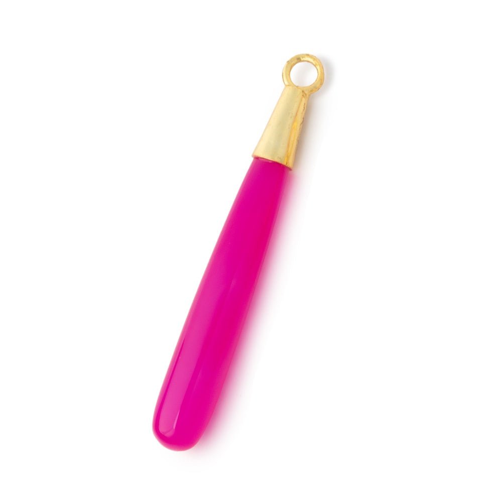 Vermeil Capped Pink Chalcedony Plain Tear Drop Pendant sold as 1 focal bead measuring approximately 40x6mm average size with a 5mm jumpring. Symmetrical unfaceted tear drop shape with a vitreous luster and great make.
