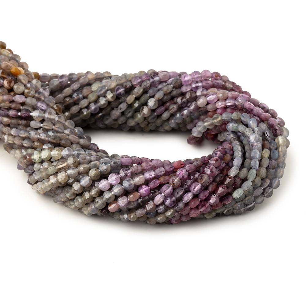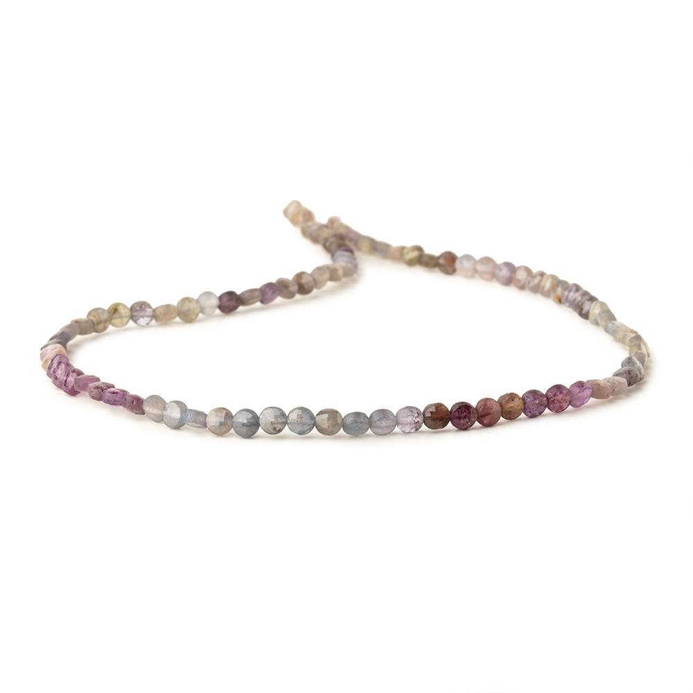 4mm Multi Color Umba Sapphire Checkerboard Calibrated Faceted Coin Beads have a vitreous luster, great polish, a calibrated shaped body, the gem bodies are a range of lightly to moderately saturated fancy Sapphire hue with transparent to opaque qualities, and these rare Umba Sapphire beads are a well crafted strand of unique abd stunning quality AAA grade bead group. 1mm drill hole internal diameter