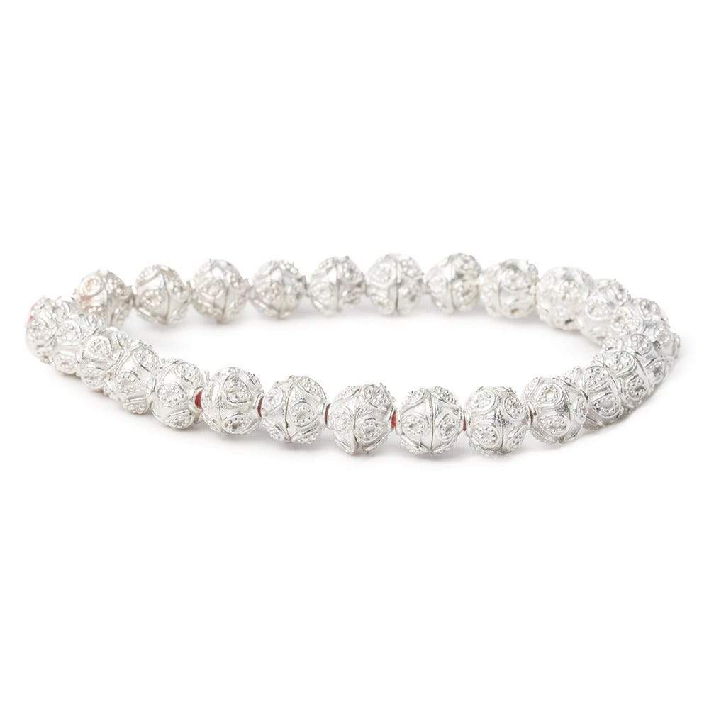 4x8x8mm Sterling Silver Plated Copper Bead Cap Bali Miligrain Design 8 inch 54 beads