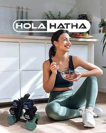 Level up your home gym exercise equipment with the HolaHatha 146-Pound Dumbbell Set, a comprehensive and colorful weight collection tailored to elevate your strength and conditioning workouts. This versatile set is a great addition to your home setup, offering a diverse range of dumbbell weights to accommodate a wide variety of exercises. Whether you're into lunges, kickbacks, bicep curls, cardio routines, or more, this set ensures your fitness regimen never becomes monotonous. Carefully crafted to fit comfortably in smaller hands, these free weights are an ideal choice for those who struggle with larger handles. The non-slip neoprene coating and hex-shaped ends provide a secure grip even when you're perspiring profusely, preventing any accidental slips, or rolling while in use. These dumbbells are engineered for long-term durability, crafted from premium materials, ensuring they can withstand the rigors of your daily workouts. This complete kit includes a handy storage dumbbell rack, allowing you to keep your workout equipment neatly organized when not in use. The multicolored set comprises (2) 3-pound, (2) 5-pound, (2) 8-pound, (2) 10-pound, (2) 12-pound, (2) 15-pound, and (2) 20-pound dumbbell weights, providing you with comprehensive range to suit your evolving fitness needs. Whether your goal is to gain tone and definition or simply maintain an active lifestyle, these dumbbells are designed with your exercise enjoyment in mind. Elevate your fitness journey at home with the HolaHatha 146-Pound Dumbbell Weight Set, designed to empower you in achieving your fitness goals while making your workouts enjoyable and effective.