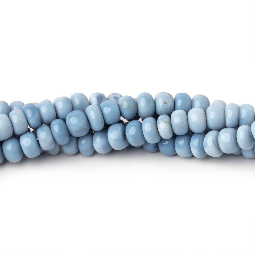 Natural Owyhee Denim Blue Opal Plain Rondelles have a waxy luster, exhibit good polish with a symmetrical shape and color ranges from a pale sky blue to medium slightly grayish denim blue for a very soothing group of Blue Opal rondelles.