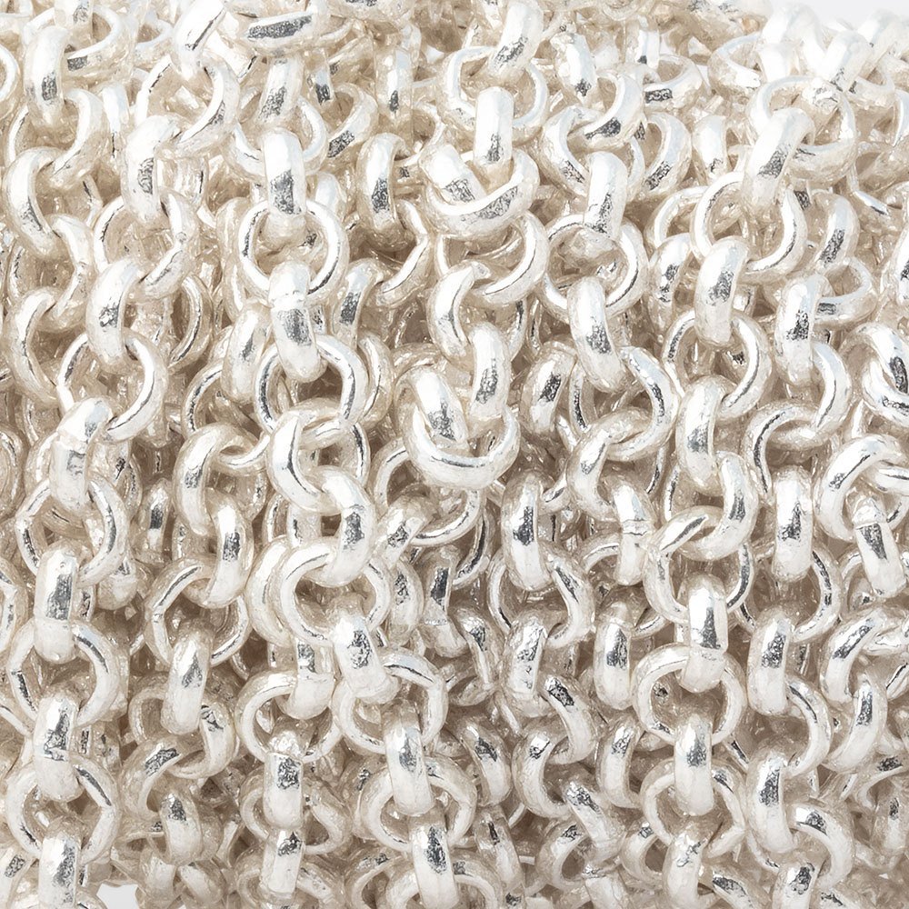 5mm Silver plated Rolo Chain is a sturdy, hand crafted rosary chain sold by the foot. 3 quantity = 3 continual feet.