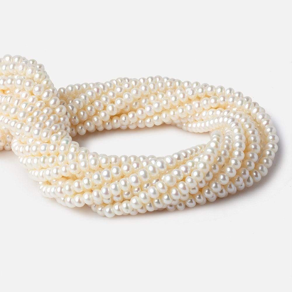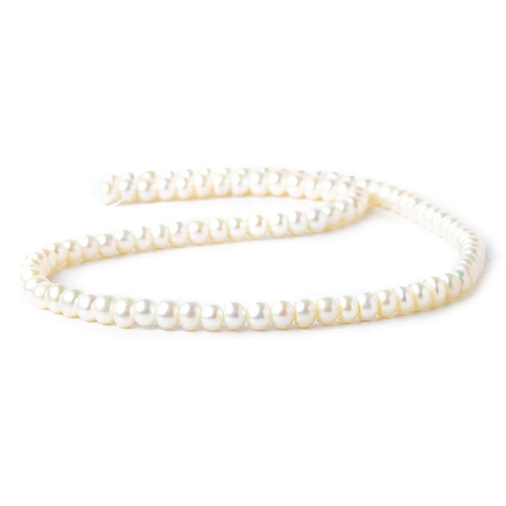 5x4mm Cream Center Drilled Button Freshwater Pearls show excellent luster, excellent nacre quality, well matched on strand, uniform size with symmetrical shape, and is a color treated freshwater pearl. 94 pieces
