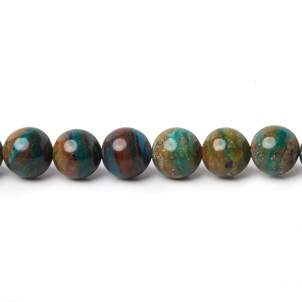 Peruvian Blue Opal unfaceted Rounds have a waxy luster, exhibit good polish with areas of matrix, a symmetrical round bead, have an opaque transparency, and colors range from a dark ochre beige to a medium greenish blue hue for a varied group of Peruvian Blue Opals in the sought after round shape. A grade