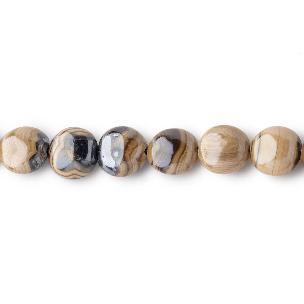 Schalenblende plain coin beads present as an opaque banded formation polished to revealed concentric Sphalerite and Wurtzite with metallic areas of Galena. Schalenblende consists of alternating bands of brown-yellow Sphalerite, Brunckite, and Wurtzite, and Lustrous Galena of which Sphalerite and Wurtzite are fluorescent in UV light. These beads are symmetrical and have bountiful areas of metallic grey and banded golden yellow and brown hues. AA Rare gemstone mined in Poland.