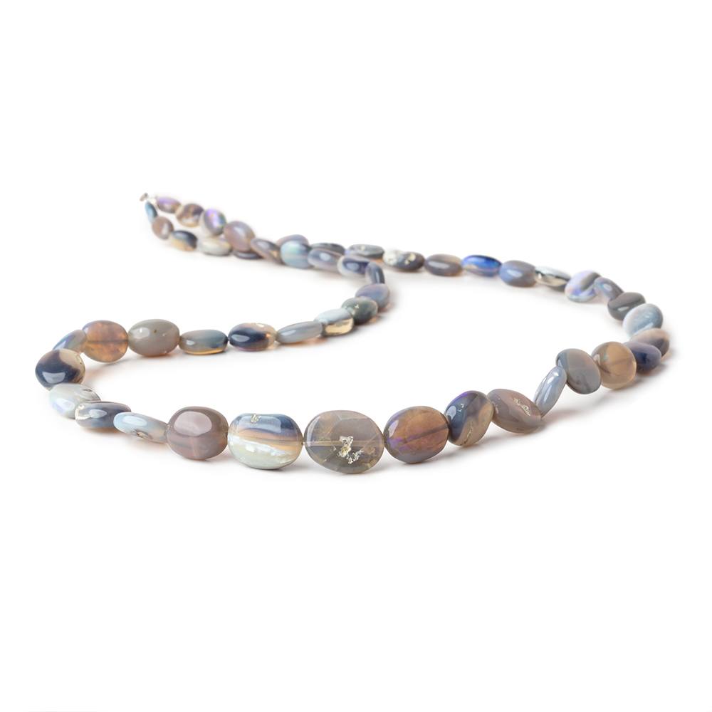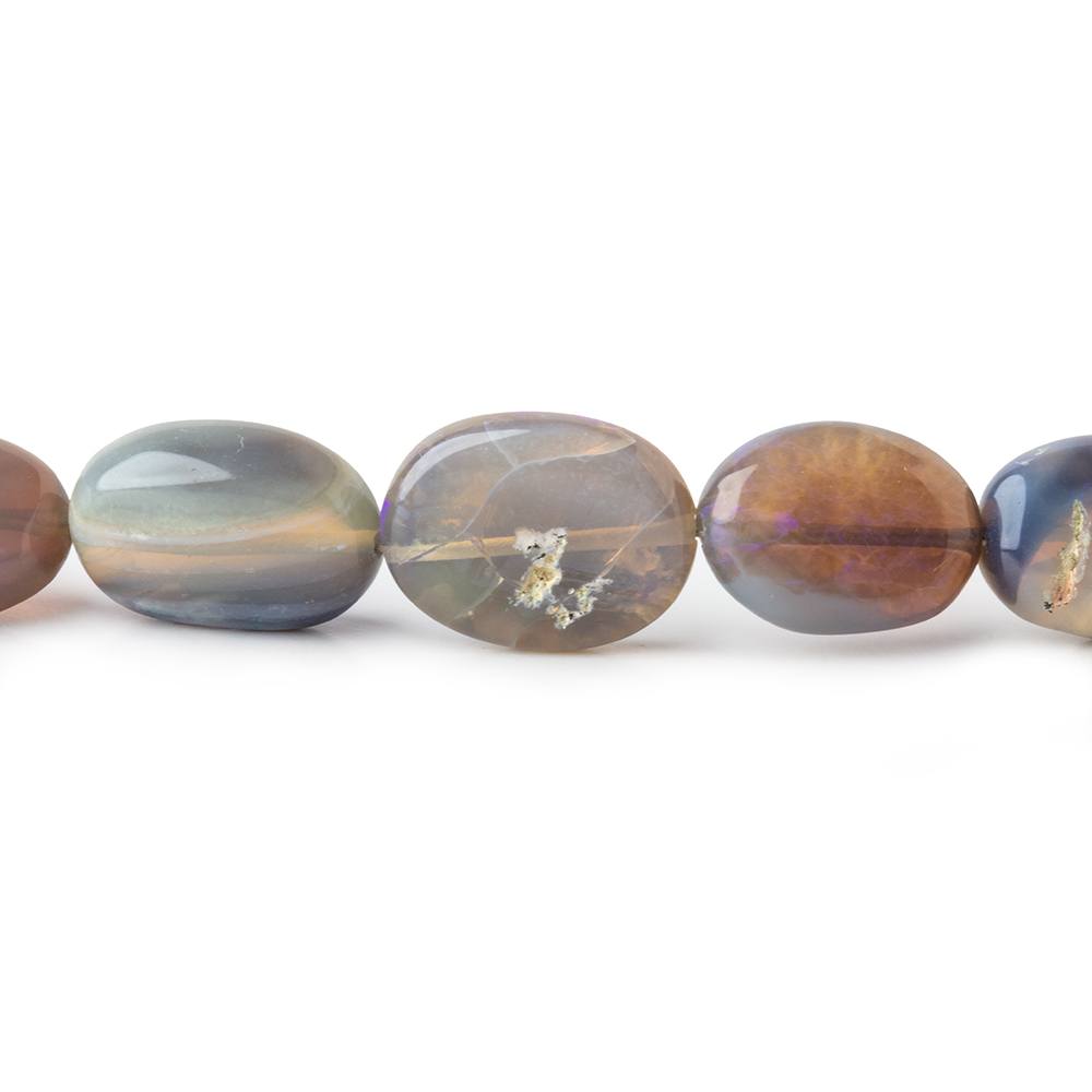 Australian Opal Plain Nugget Beads have an asymmetrical shape showing opaque to translucent areas of blue-grey opals with vibrant Play of Color and an organic appearance due to areas of matrix which add soft creamy beige hues. A spectacular grouping that have polished bodies with areas of pitting due to surface irregularities of the natural Opal beads.