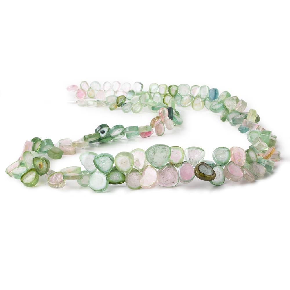 MultiColor & Watermelon Afghani Tourmaline irregular freeform shapes consisting of trillions, hearts, and pears showing vitreous luster on the transparent bodies having the crisp hues of Afghani origin, there are a good qualtity of Watermelon and BiColor beads on the well made strand of superior quality Tourmaline for a AAA grade due to the strand's rarity, matching, and overall appearance.
