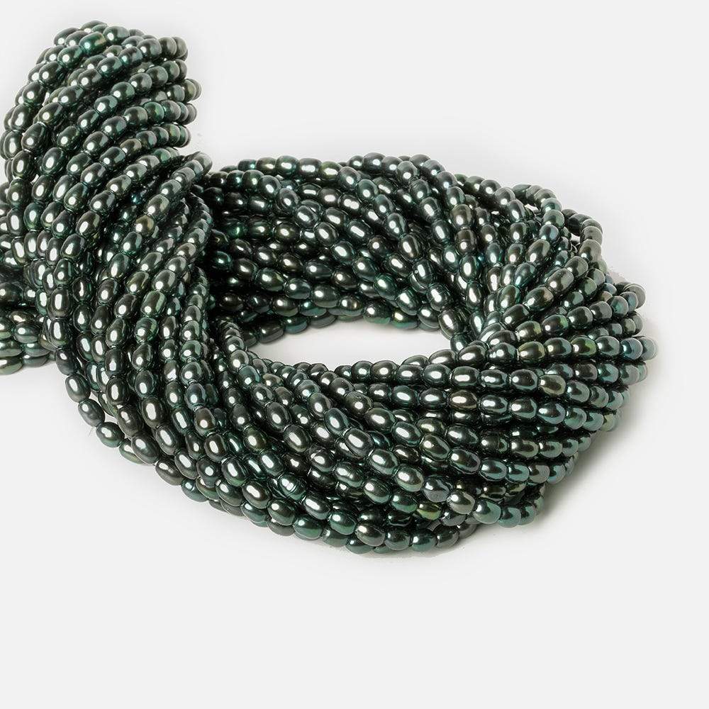 6x4mm Blue Green Peacock Large Hole Oval Freshwater Pearls 15inch 60 pcs