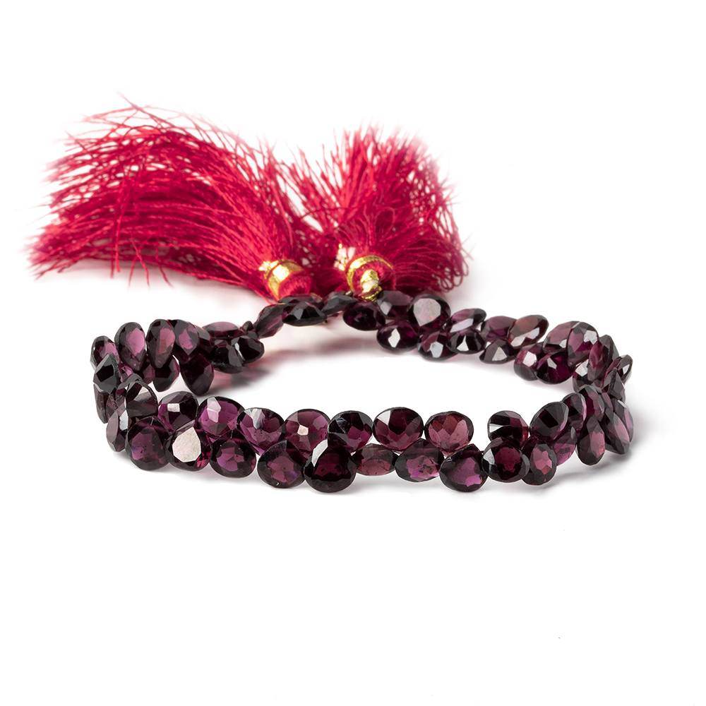 6x6mm Rhodolite Garnet Bevel & Pavilion Faceted Hearts 8 inch 72 Beads AAA