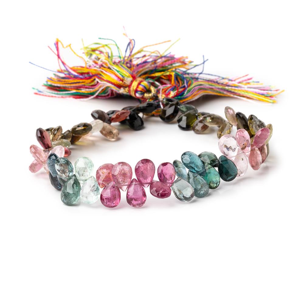 7x5-8x5.5mm Multi Color Tourmaline Faceted Pear Beads 8 inch 66 pieces