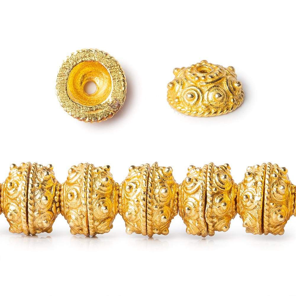 8mm 22kt Gold plated Copper Bead Cap Moroccan Dot 8 inch 60 pieces