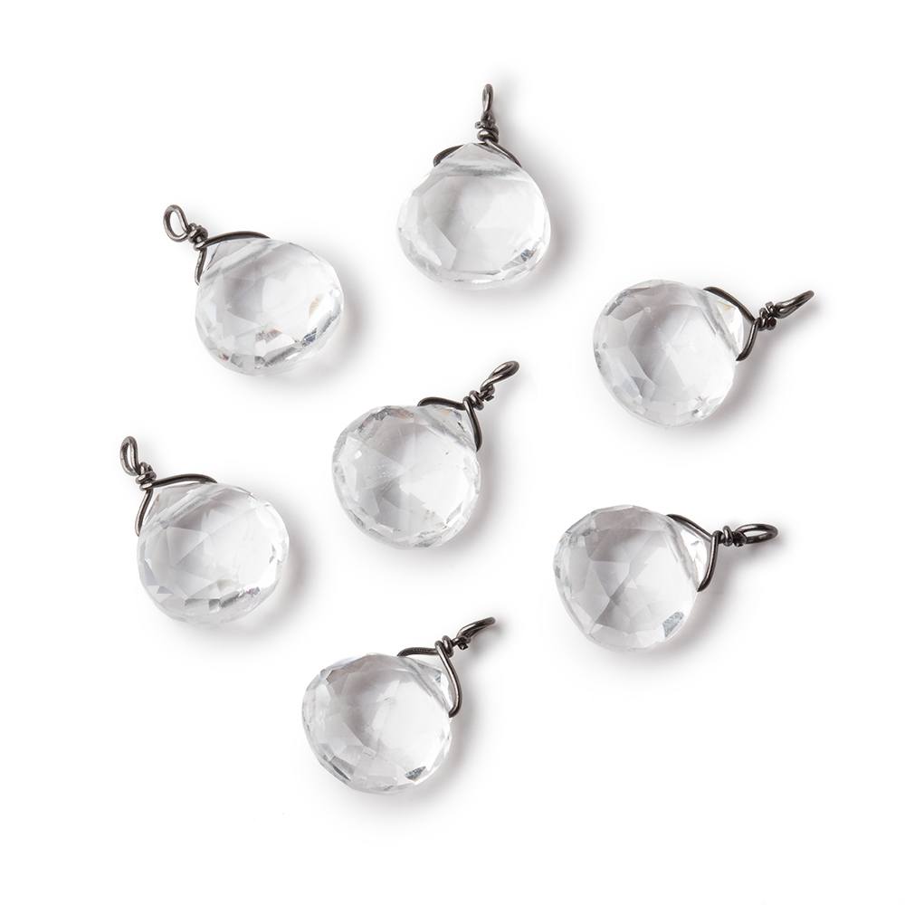 8x8mm Crystal Quartz faceted Heart shape Pendant wrapped with Black Gold over .925 Silver Wire at the top, sold as 1 focal bead.