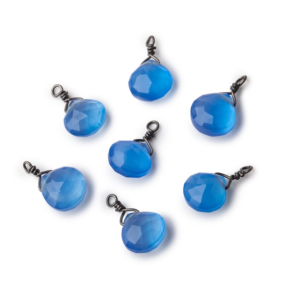 8x8mm Santorini Blue Chalcedony faceted Heart shape Pendant wrapped with Black Gold over .925 Silver Wire at the top, sold as 1 focal bead.