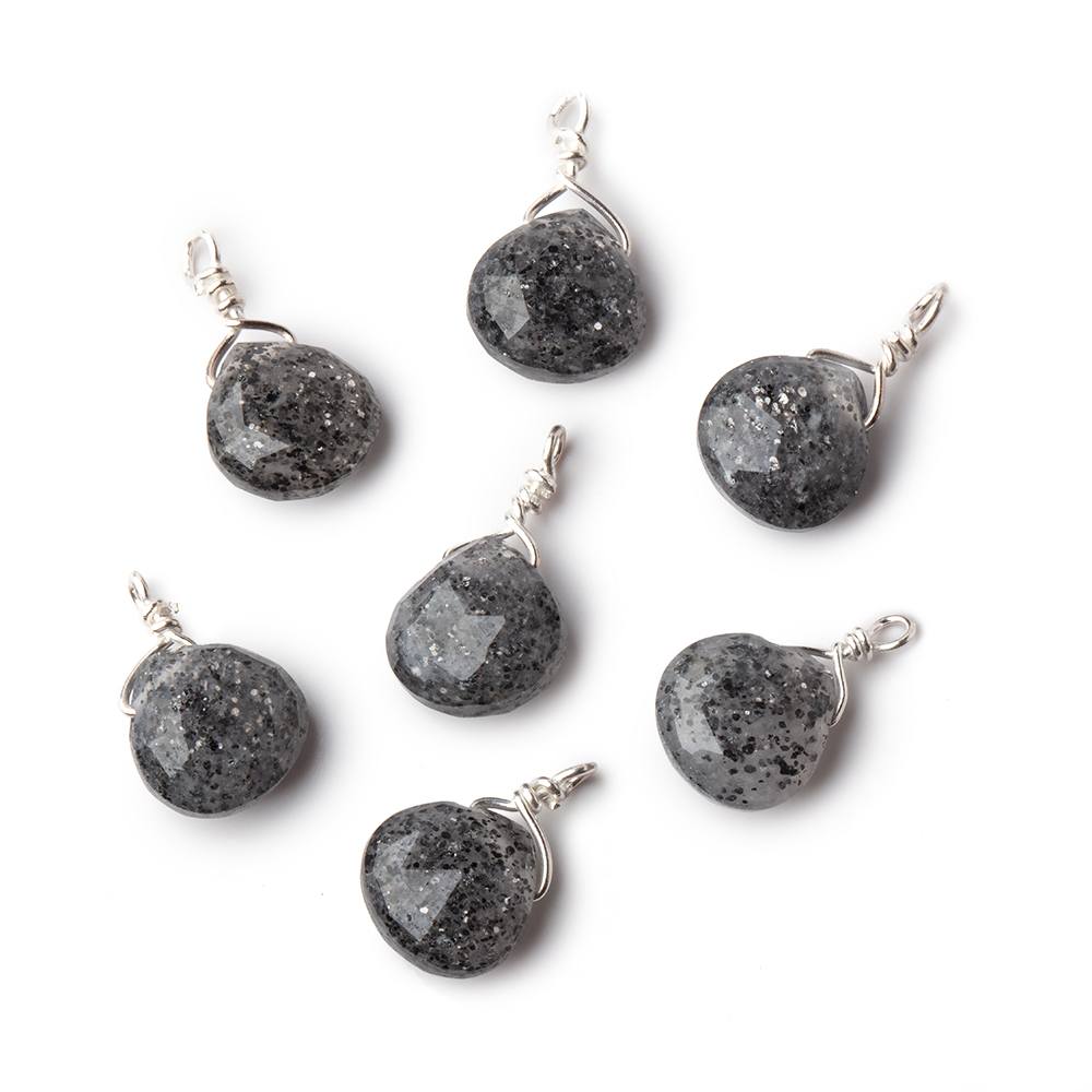 8mm Silver Wire Wrapped Celestial Quartz Faceted Heart 1 Focal Pendant