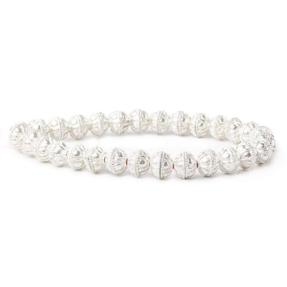 8mm Sterling Silver plated Copper Bead Cap Bali Design 8 inch 58 beads