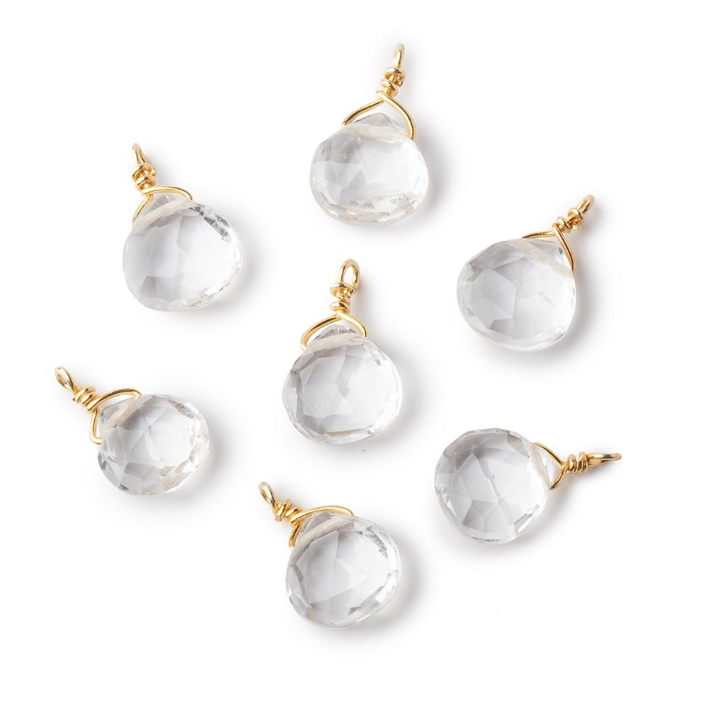 8x8mm Crystal Quartz faceted Heart shape Pendant wrapped with Vermeil Wire at the top, sold as 1 focal bead.