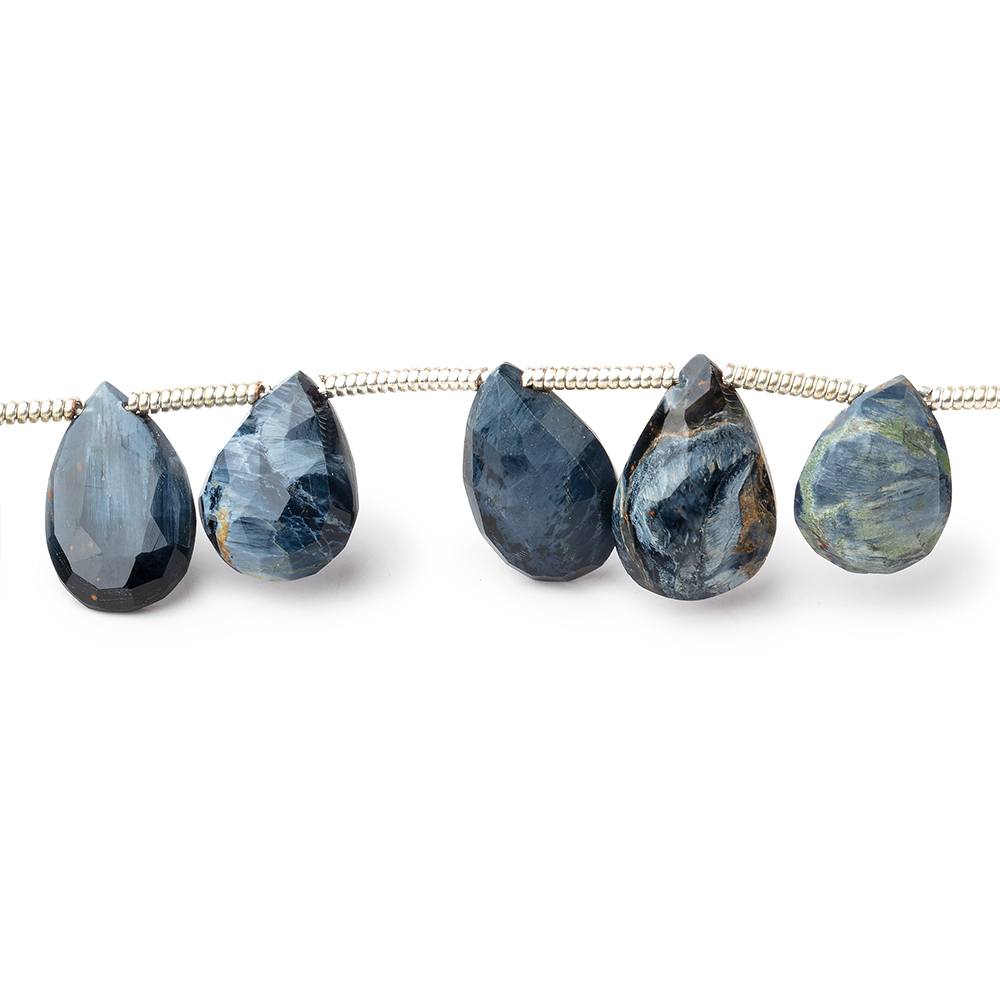 Pietersite Faceted Pear Beads measure approximately 9x7mm to 11x7mm in size, have a vitreous luster showing Chatoyancy, the gems are a medium to dark denim blue hue with a chatoyant phenomenon to each stone, the gems have symmetry with excellent faceting and polish, beads have a dark shimmering quality to the opaque gems, and this rare gem is a fine example of the South African sourced stone.