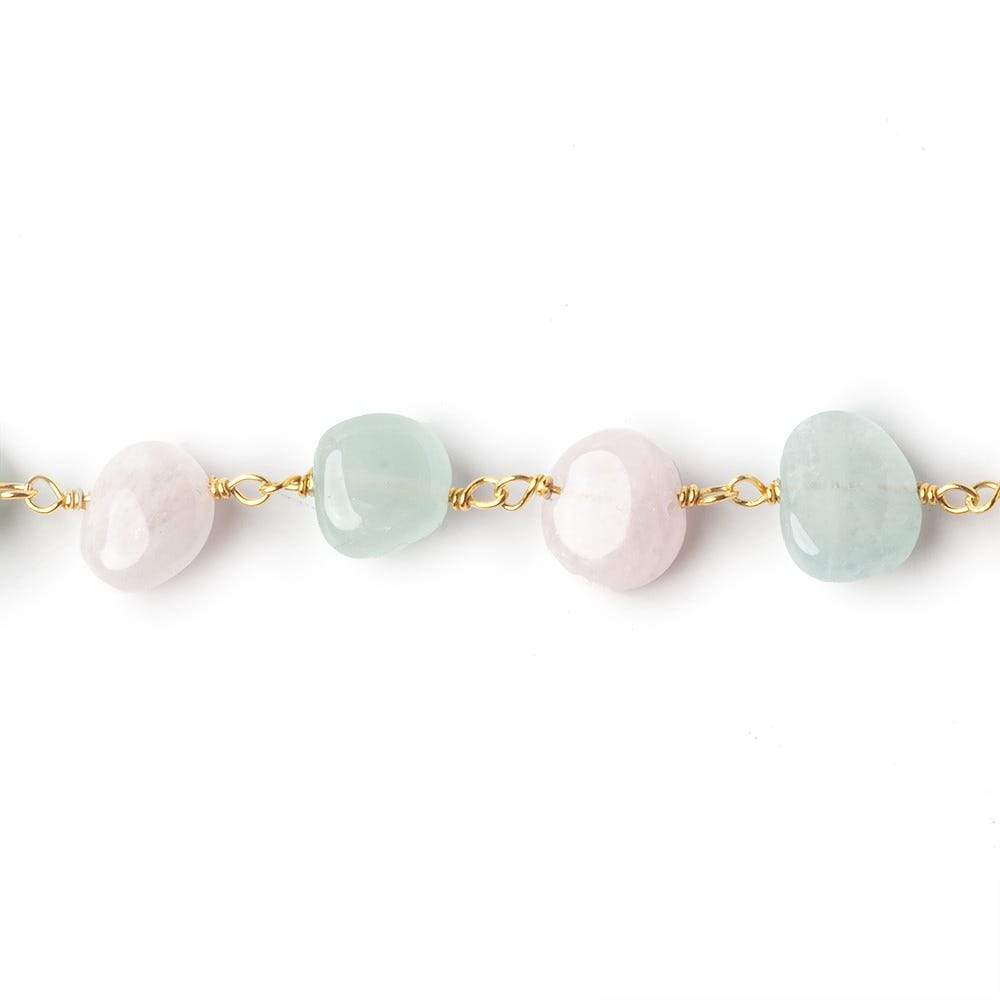 9x7-11x7mm Multi Beryl plain nugget Vermeil Chain sold by the foot consisting of 24 beads for each foot measurement. Custom created by hand from our own supply of quality beads to enable matching of strand to chain.