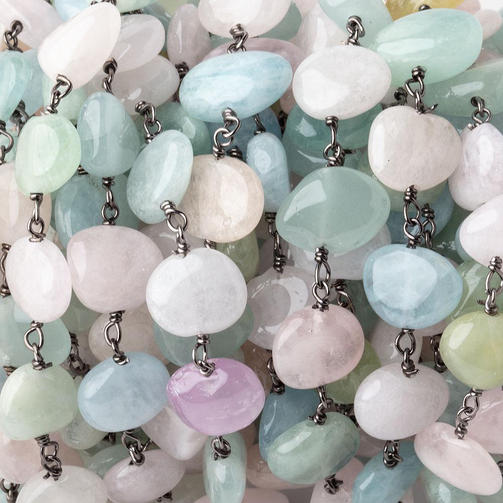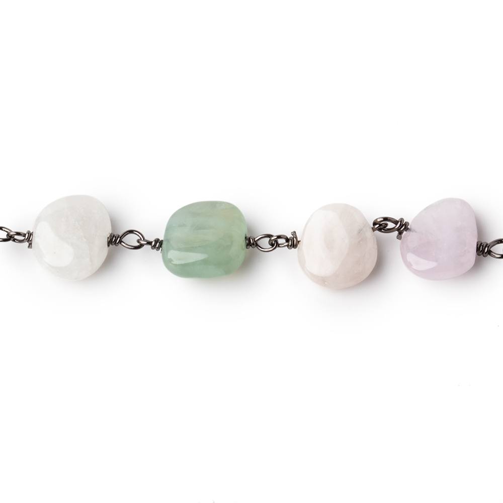 9x8-10x7mm Multi Beryl plain nuggets on Black Gold .925 Silver Chain sold by the foot consisting of 24 beads per foot. Custom created by hand from our own supply of quality beads.
