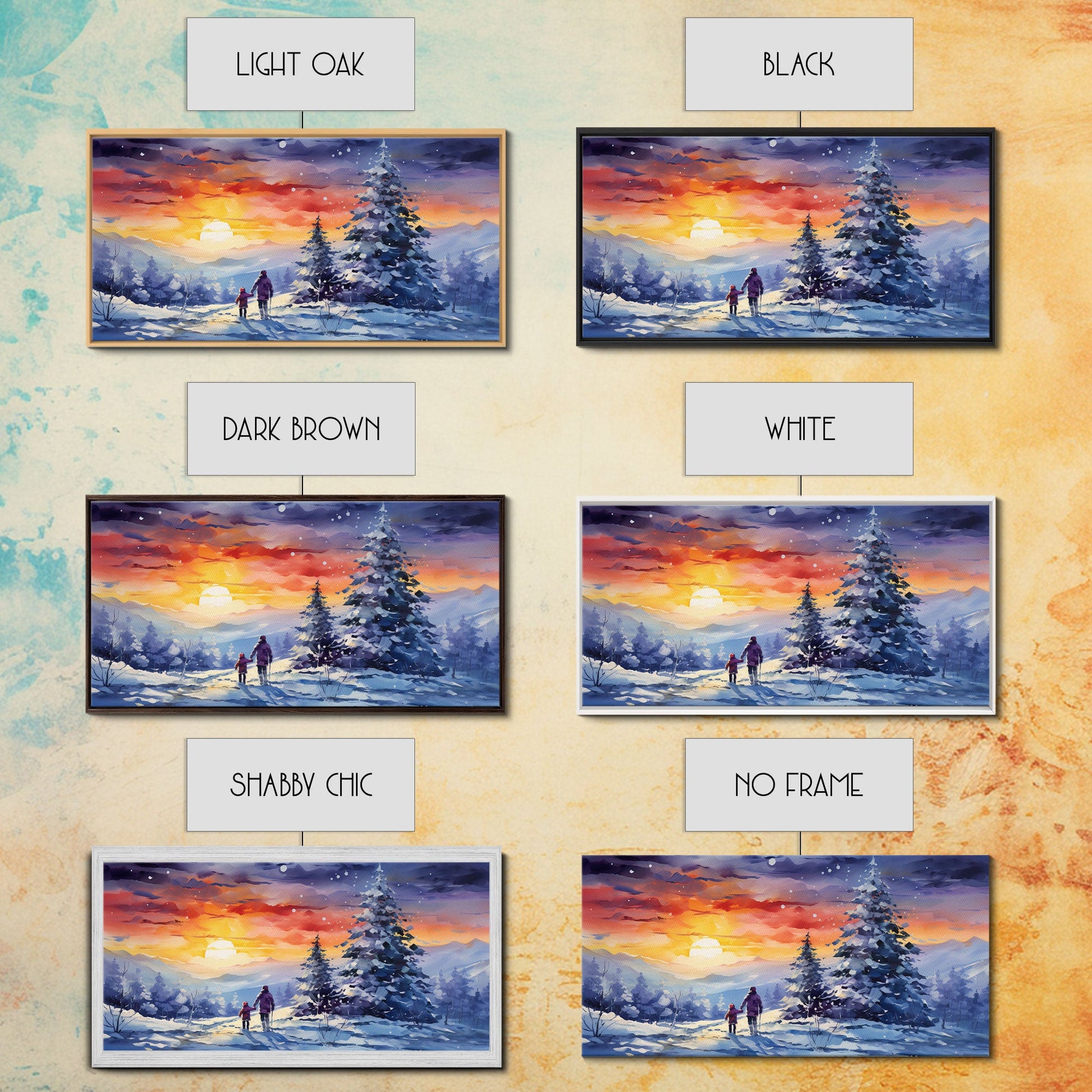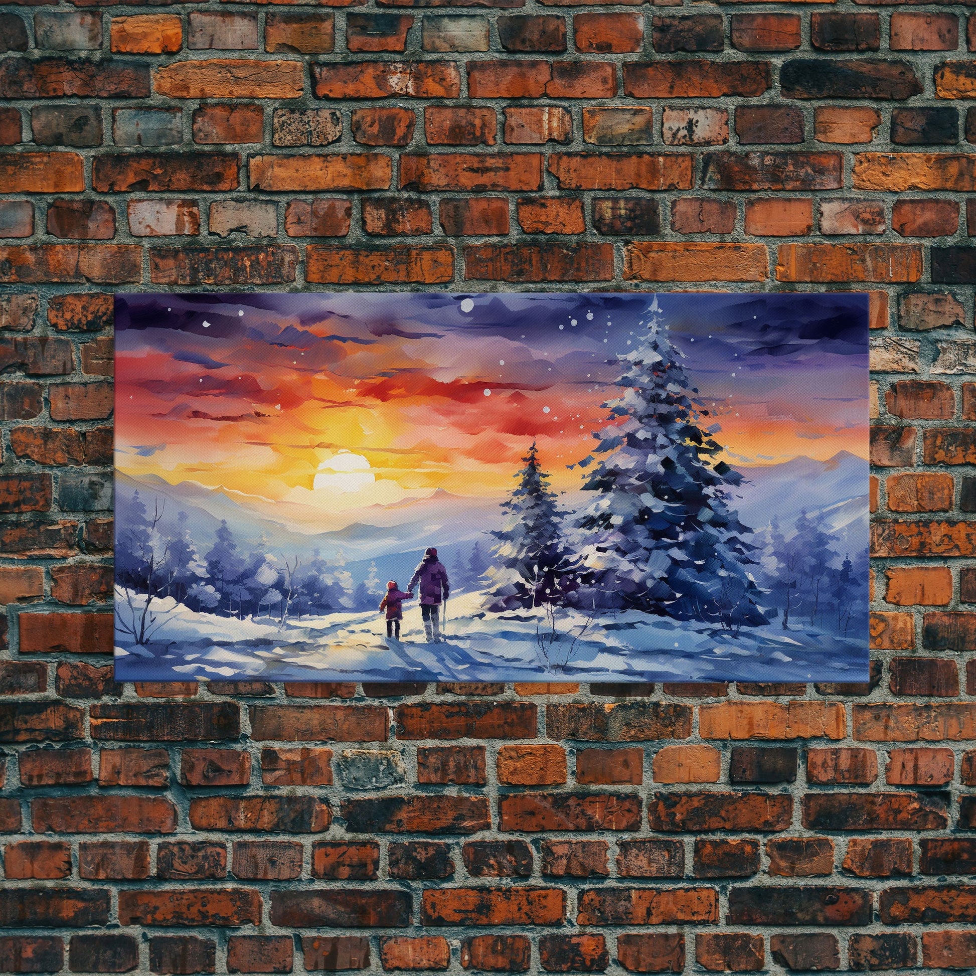 A Christmas Day Hike - Winter Wonderland Framed Canvas Print - Christmas Decor - Christmas Oil Painting - Holiday Wall Art Painting