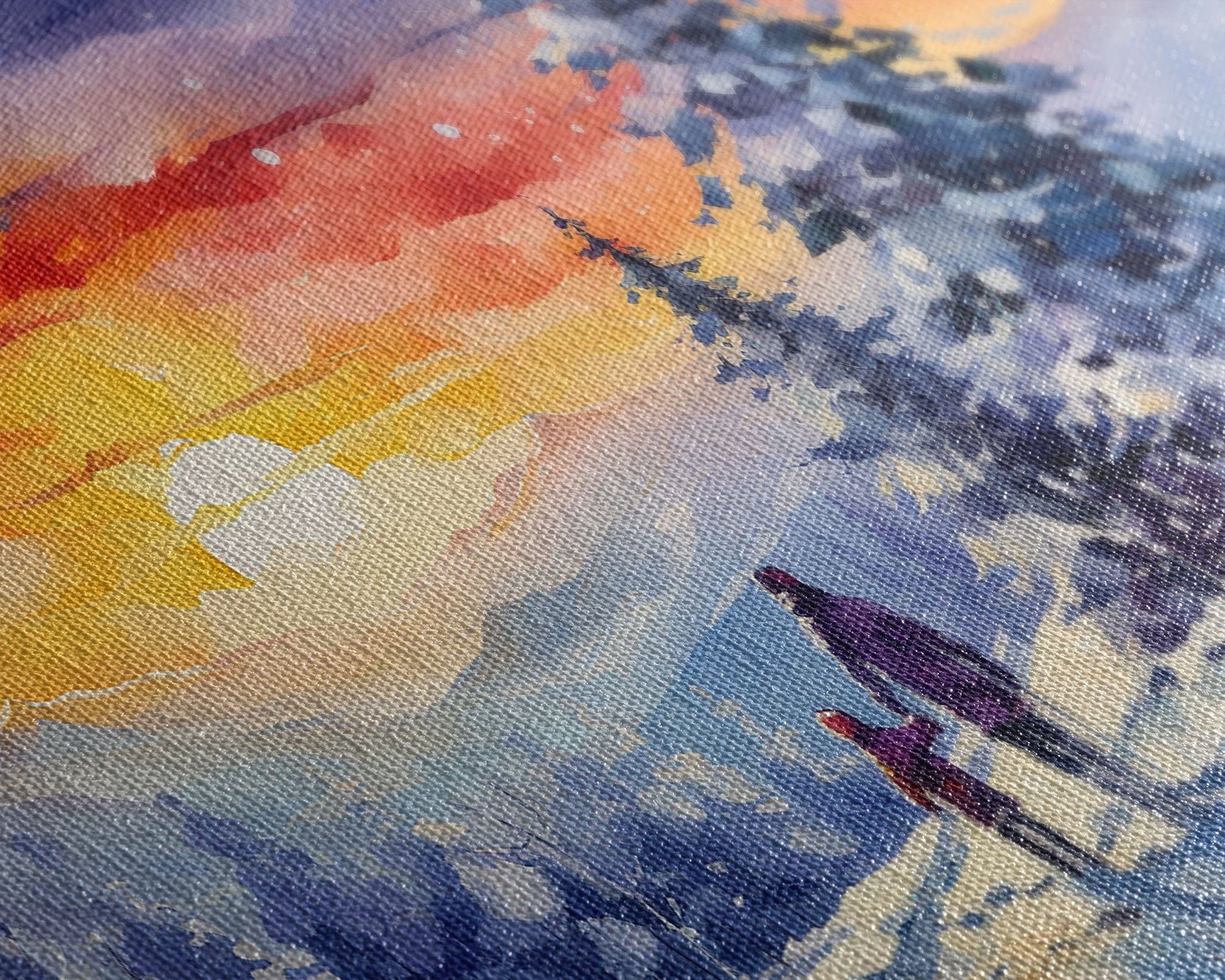 Most of our canvases are made in the USA, with the exception of canvases ordered with the light oak unstained frames, and any large canvases (24x48, 30x60, 16x48 and 20x60) ordered WITH a frame. These are temporarily made in and shipped from Europe, while we try to find a more consistent supplier in the USA.