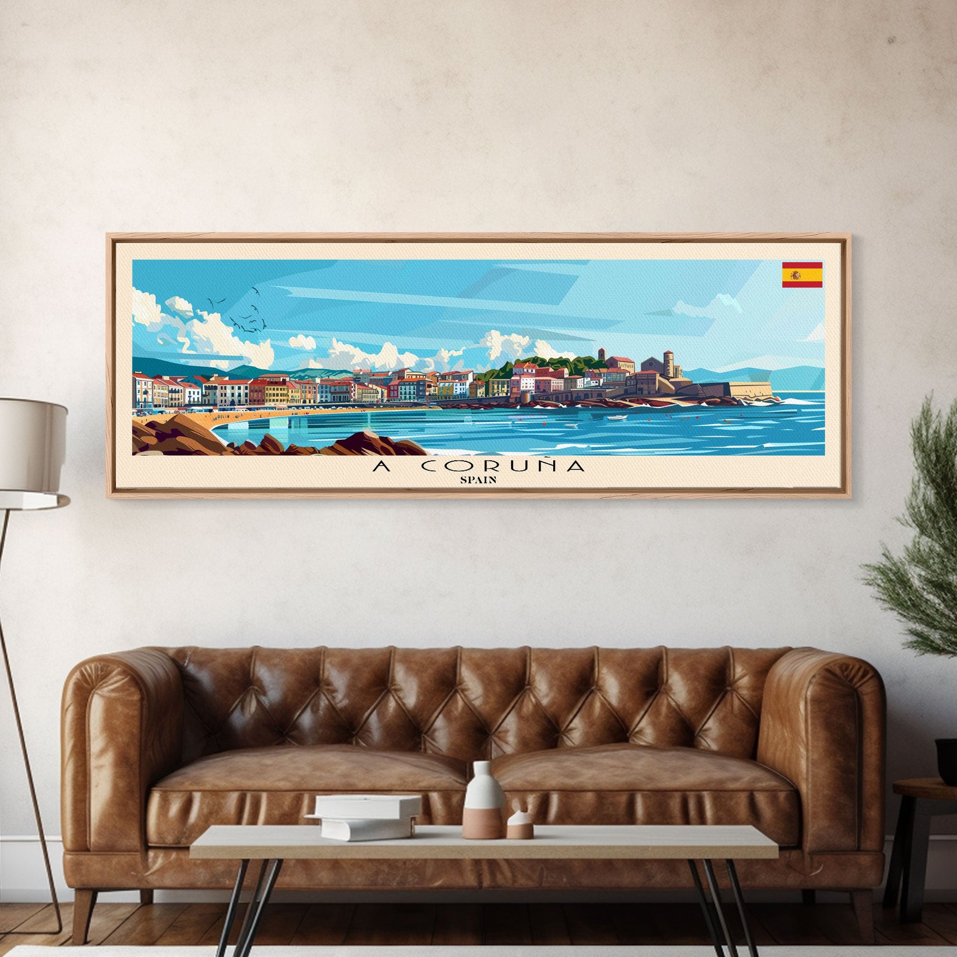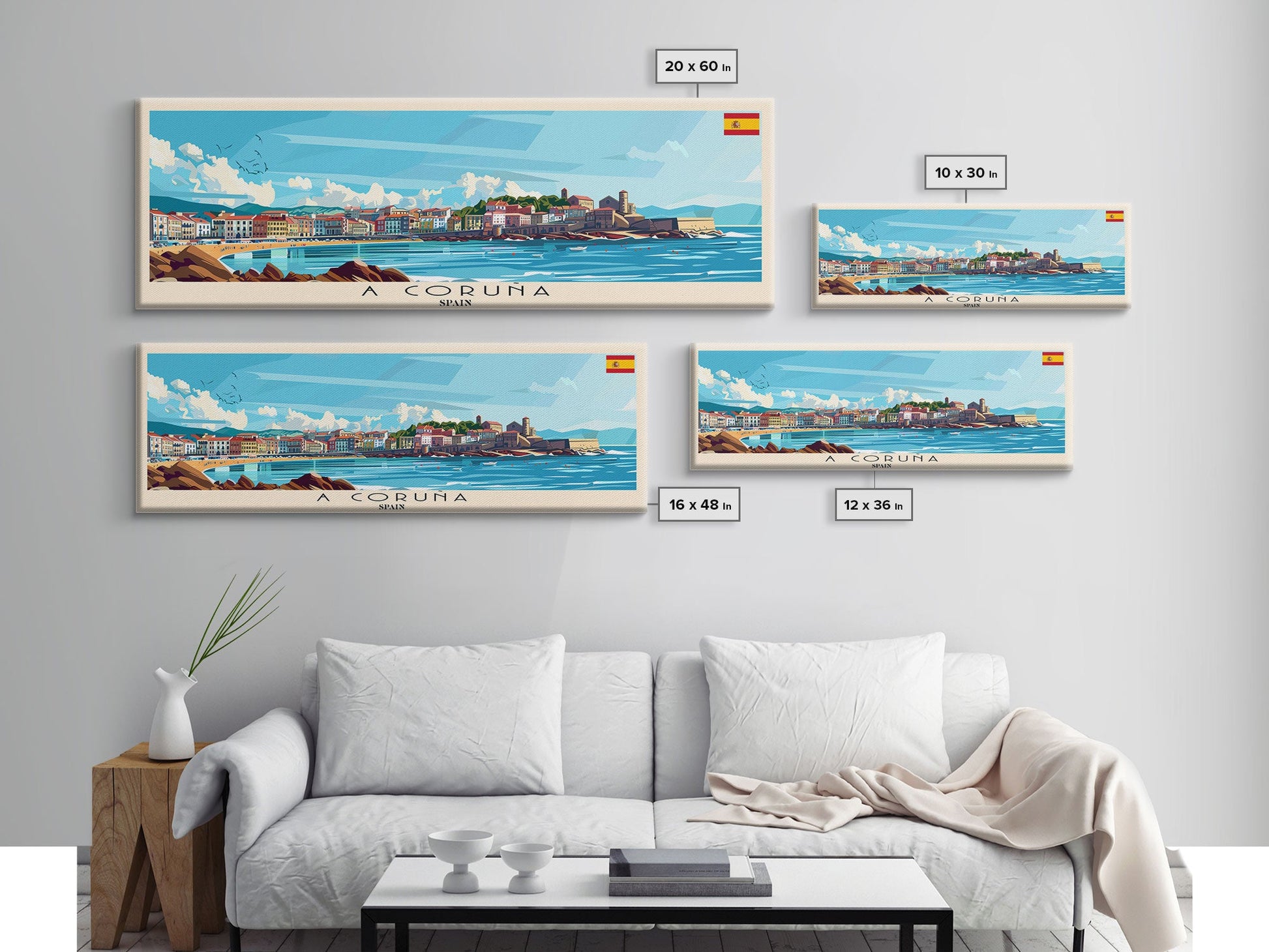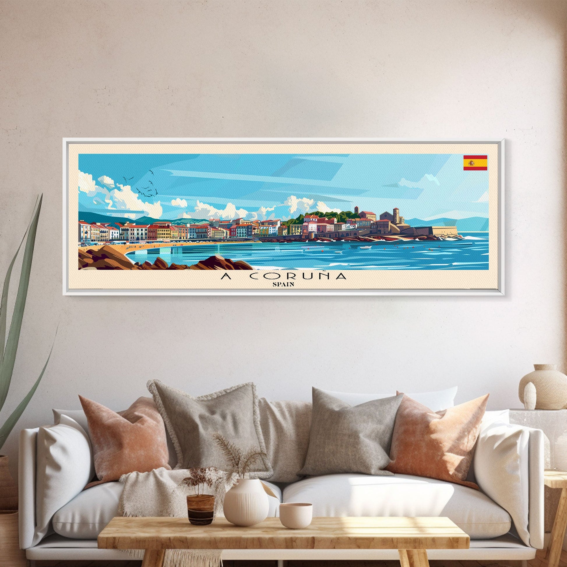 A Coruńa Spain Travel Art, City Art, Framed Canvas Print or Metal Wall Art, Europe Travel Poster, Panoramic Wall Art, Extra Wide Wall Art